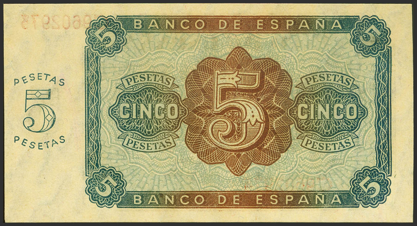 5 Pesetas. 10 de Agosto de 1938. Serie C. (Edifil 2021: 435a). Apresto original. SC.