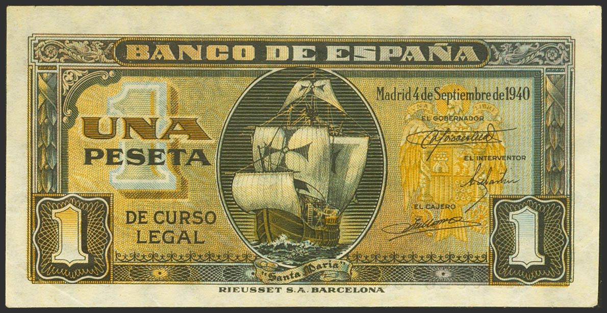 1 Peseta. 4 de Septiembre de 1940. Serie A. (Edifil 2021: 442a). Apresto original. SC--.