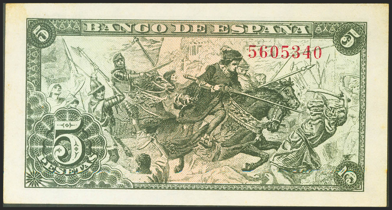 5 Pesetas. 15 de Junio de 1945. Sin serie. (Edifil 2021: 449). Apresto original. SC-.