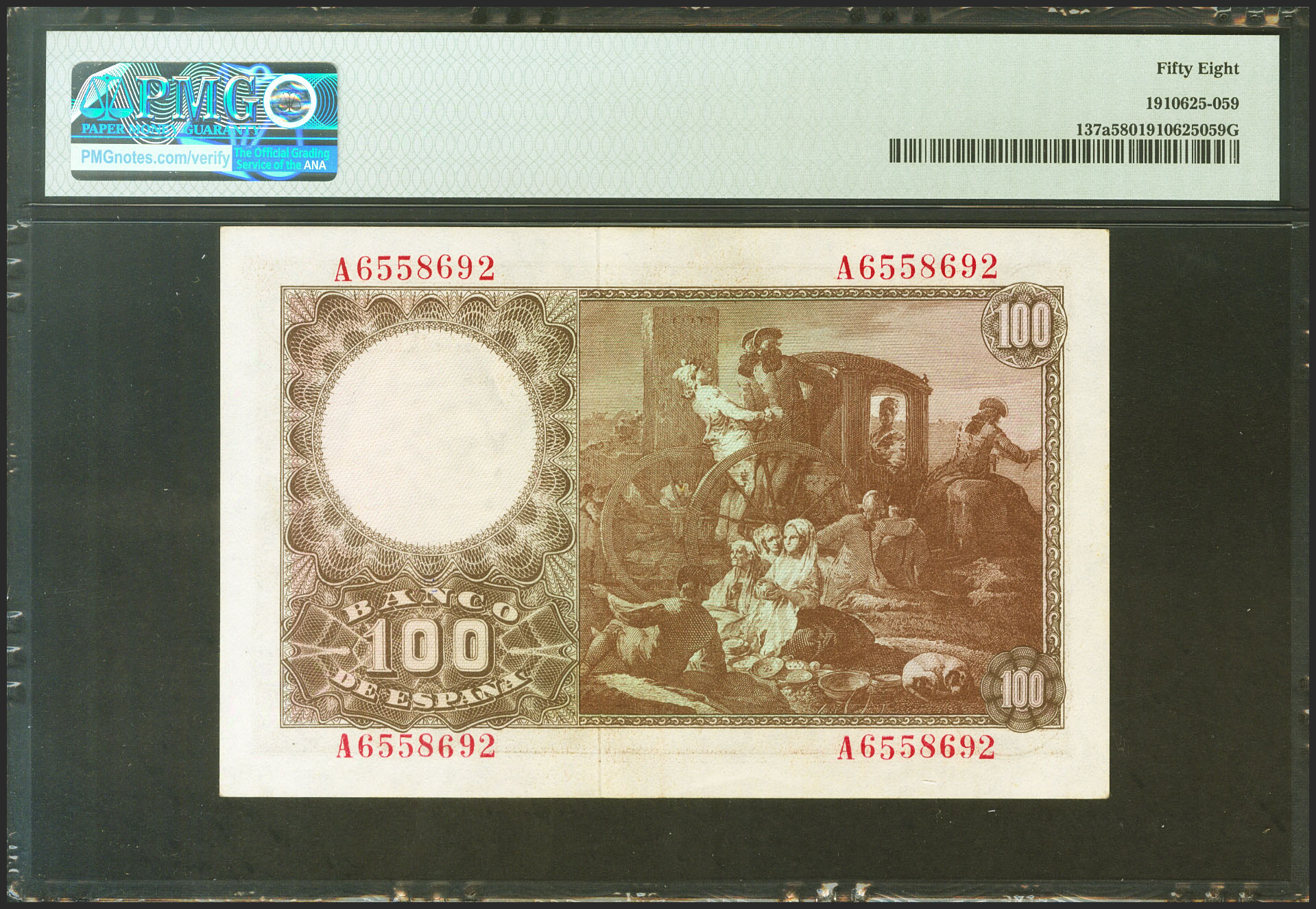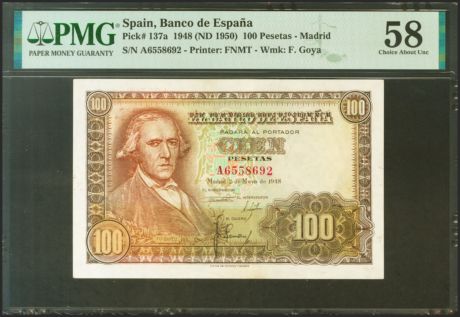 100 Pesetas. 2 de Mayo de 1948. Serie A. (Edifil 2021: 456a, Pick: 137a). EBC++. Encapsulado PMG58.