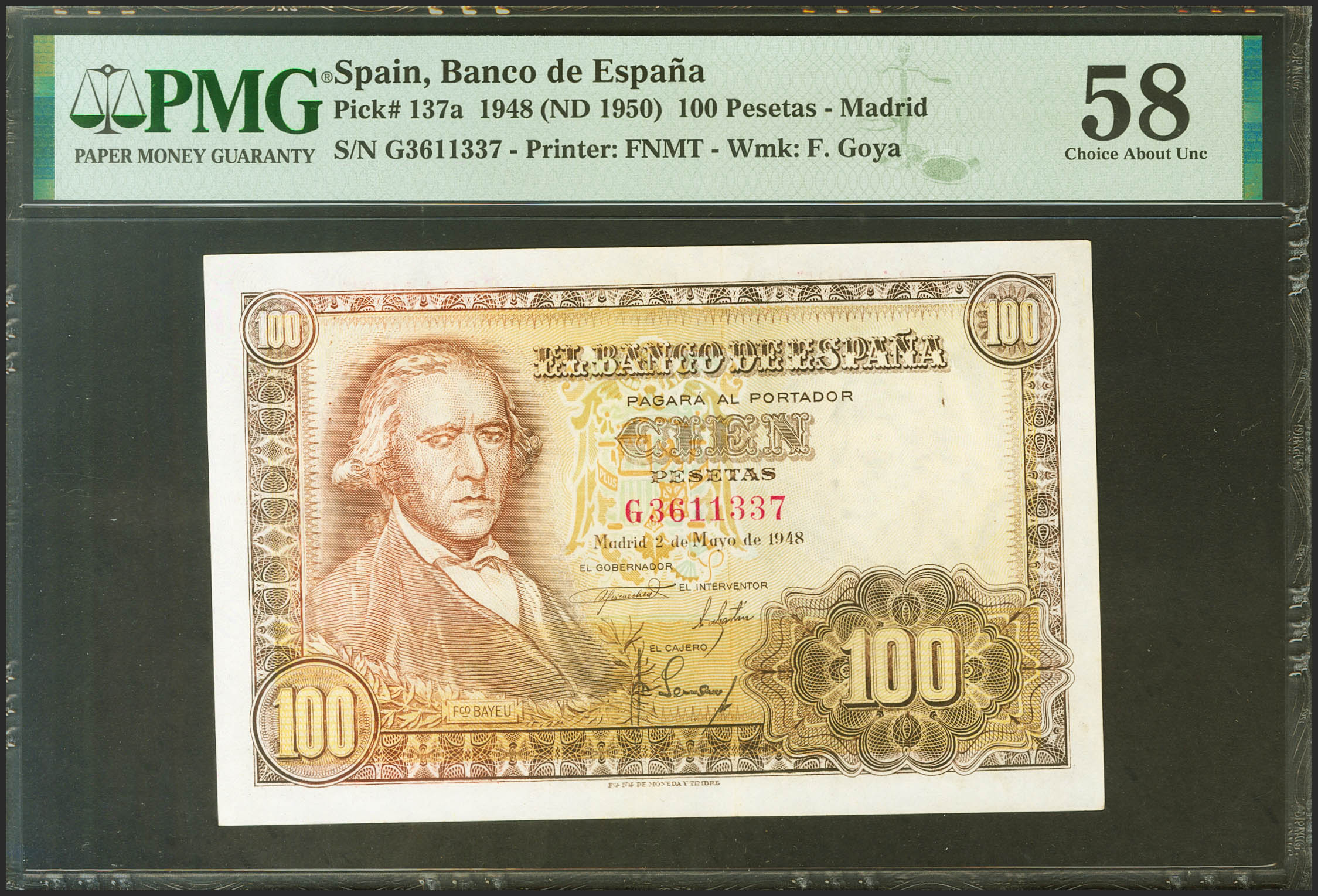 100 Pesetas. 2 de Mayo de 1948. Serie G. (Edifil 2021: 456a, Pick: 137a). EBC++. Encapsulado PMG58.