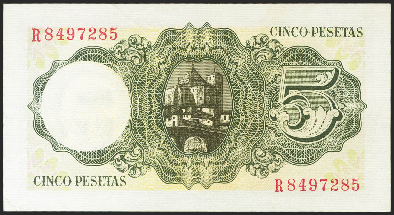 5 Pesetas. 16 de Agosto de 1951. Serie R. (Edifil 2021: 459a). Apresto original. SC-.