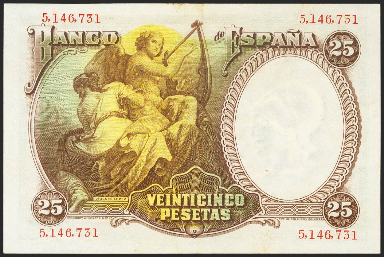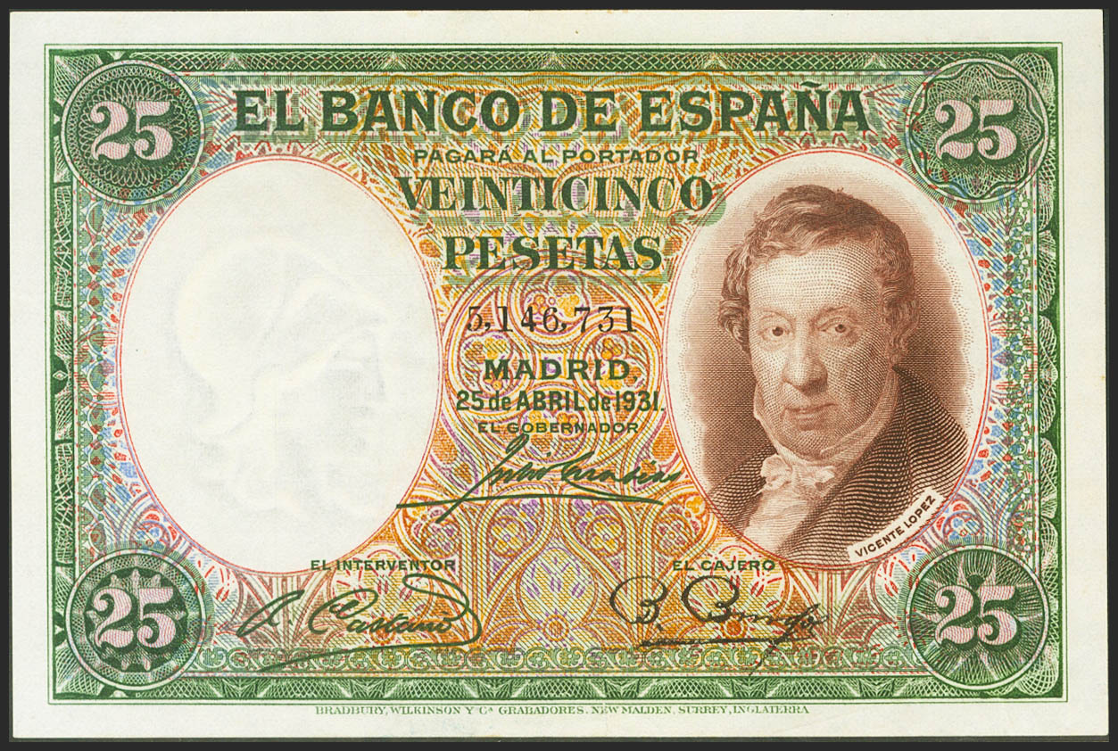 25 Pesetas. 25 de Abril de 1931. Sin serie. (Edifil 2021: 358). Conserva la gran parte del apresto original. EBC.