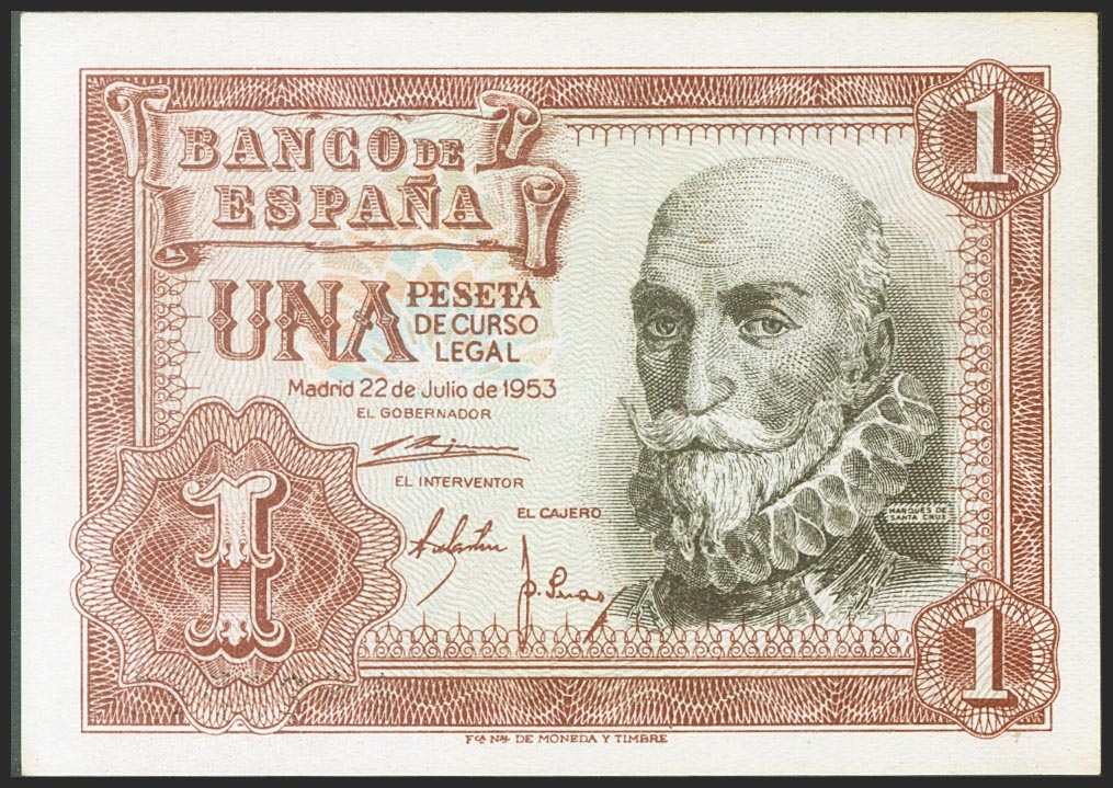 1 Peseta. 22 de Julio de 1953. Serie A. (Edifil 2021: 465a). Apresto original. SC.
