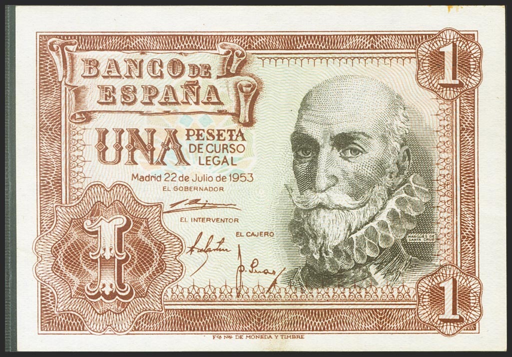 1 Peseta. 22 de Julio de 1953. Serie X. (Edifil 2021: 465a). Conserva la mayor parte del apresto original. EBC++.