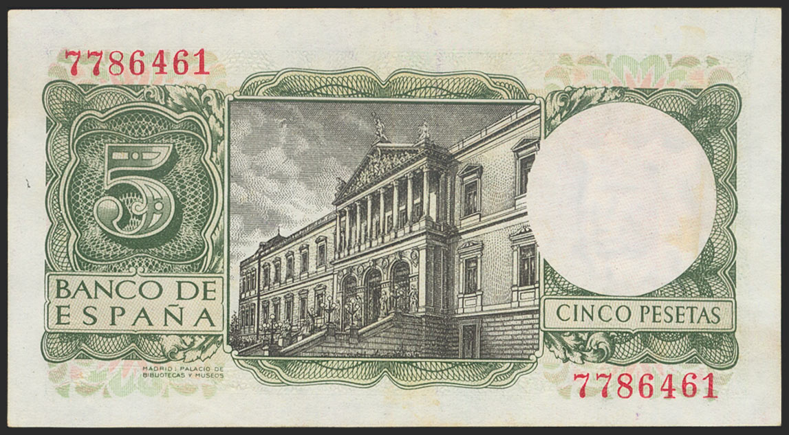 5 Pesetas. 22 de Julio de 1954. Sin serie. (Edifil 2021: 466). Presenta parte del apresto original. EBC+.