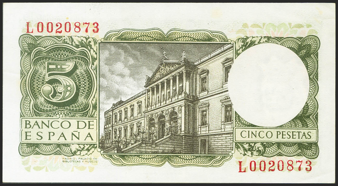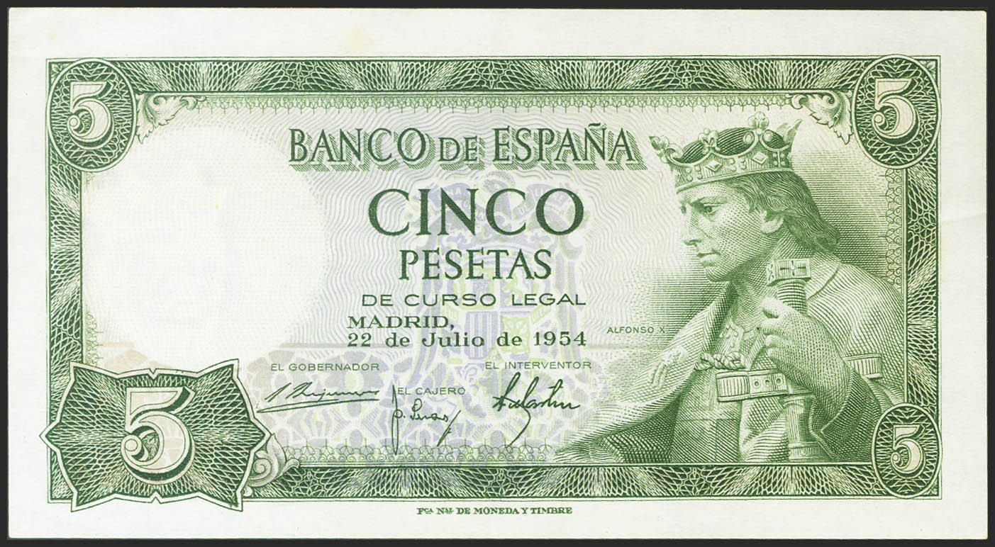 5 Pesetas. 22 de Julio de 1954. Serie L. (Edifil 2021: 466a). Conserva gran parte de su apresto original. EBC++.