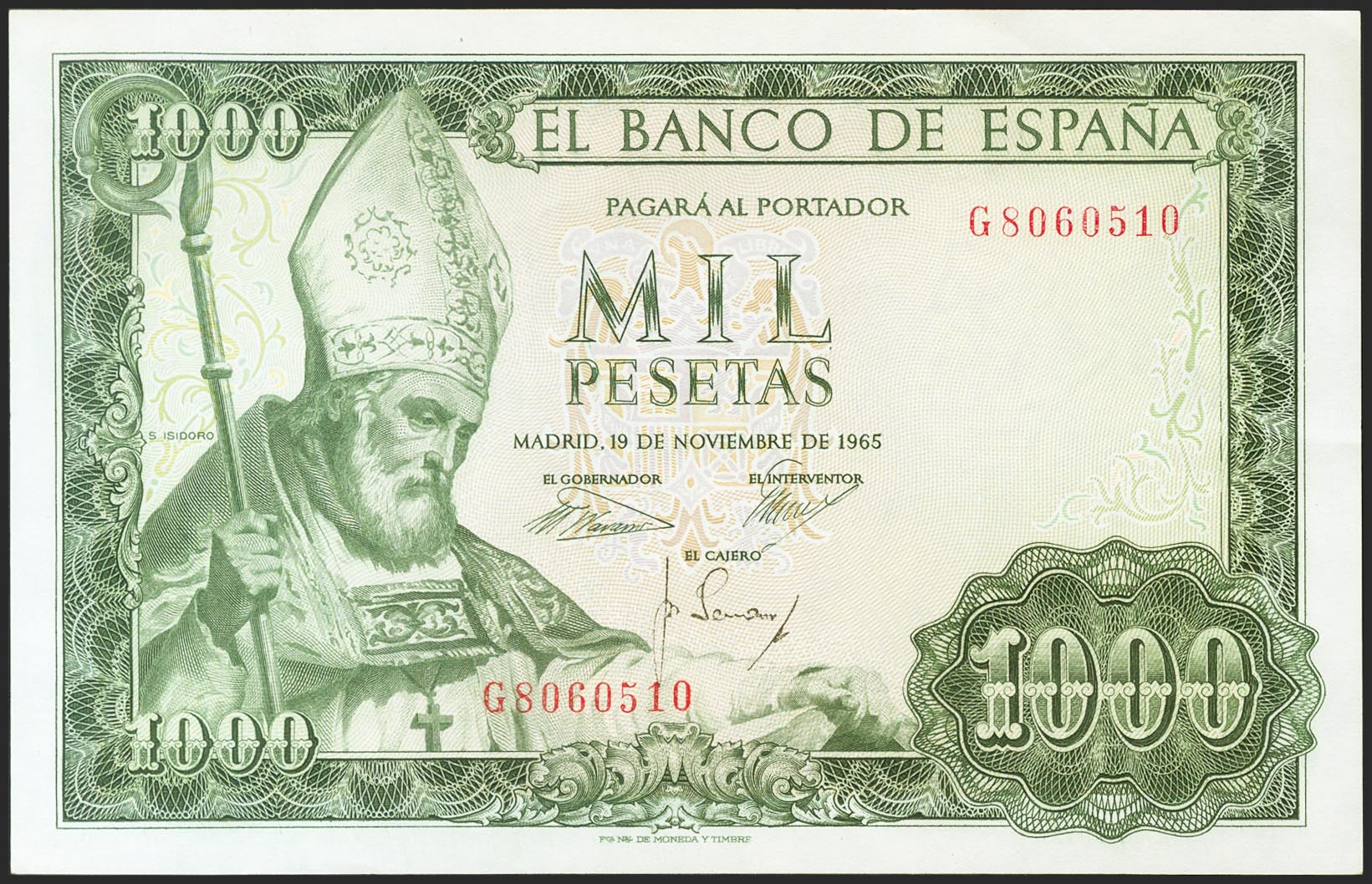 1000 Pesetas. 19 de Noviembre de 1965. Serie G. (Edifil 2021: 471b). Apresto original. SC-.