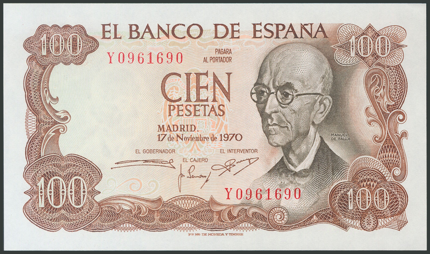 100 Pesetas. 17 de Noviembre de 1970. Serie Y y numeración capicúa. (Edifil 2017: 472b). SC.