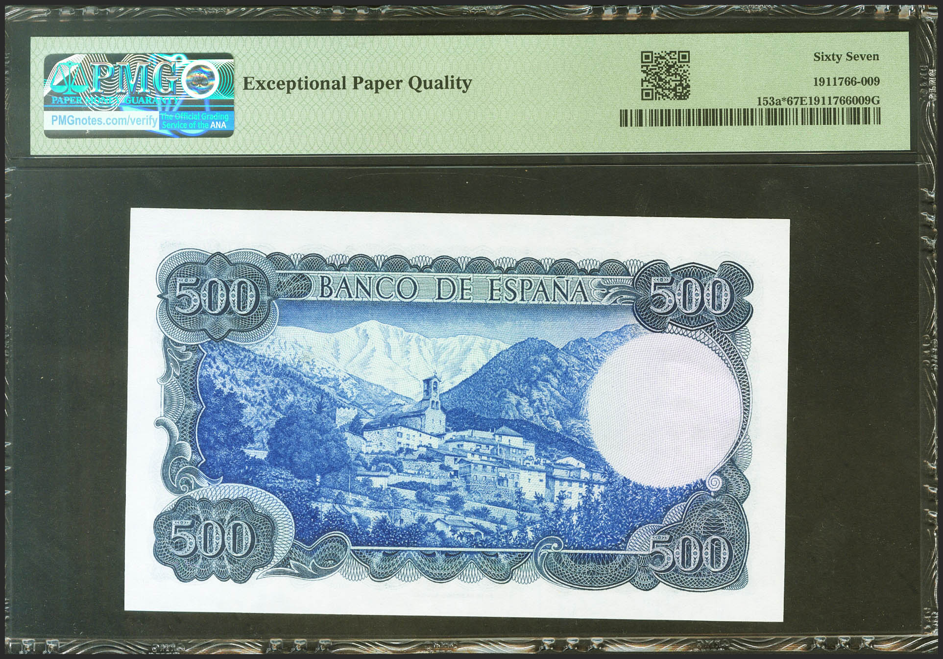 500 Pesetas. 23 de Julio de 1971. Serie especial 9A. (Edifil 2021: 473b, Pick: 153a*). Extraordinariamente raro en esta excepcional calidad. Encapsulado PMG67EPQ.