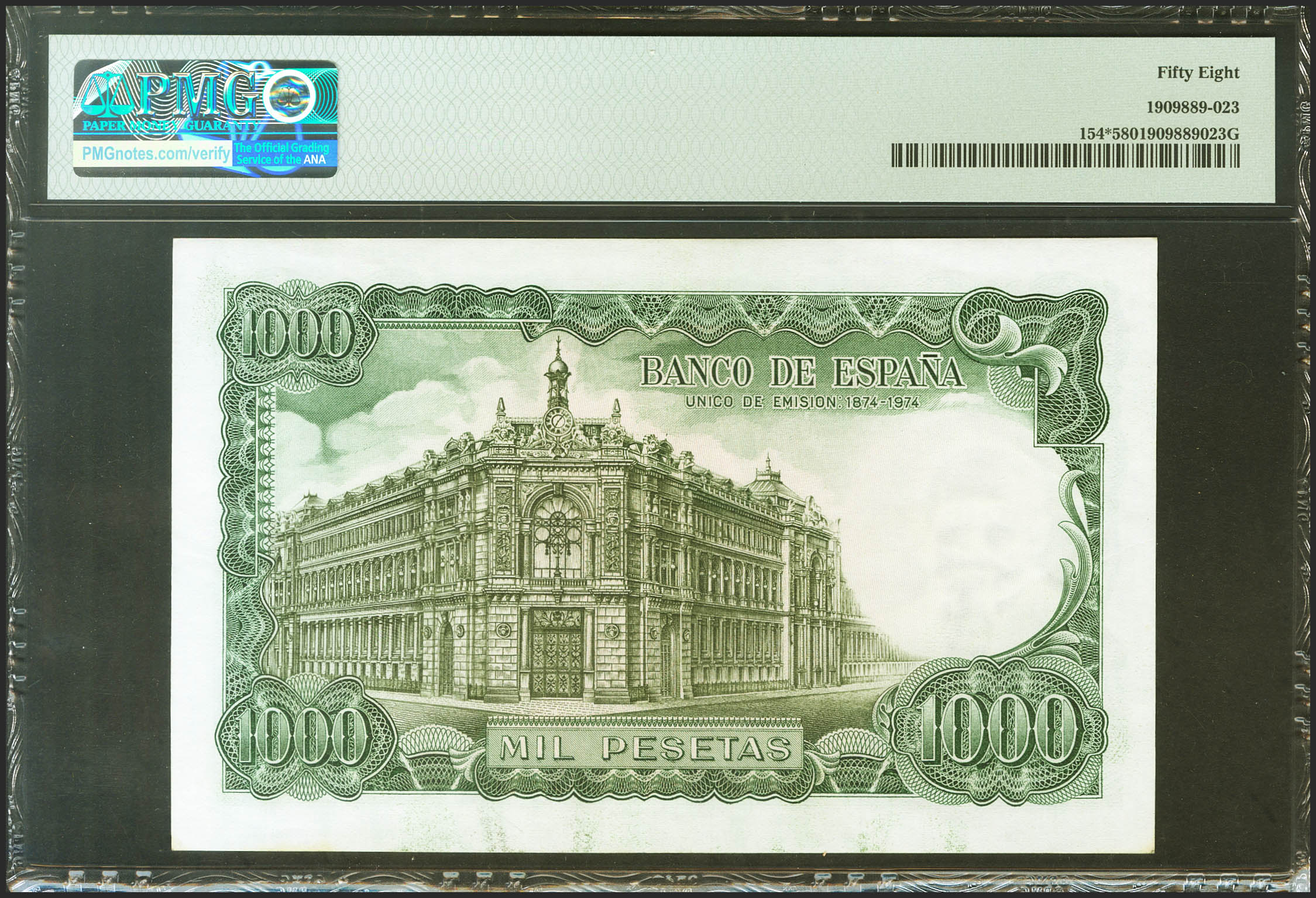 1000 Pesetas. 17 de Septiembre de 1971. Serie especial 9C. (Edifil 2021: 474d, Pick: 154*). Rara serie. EBC++. Encapsulado PMG58.