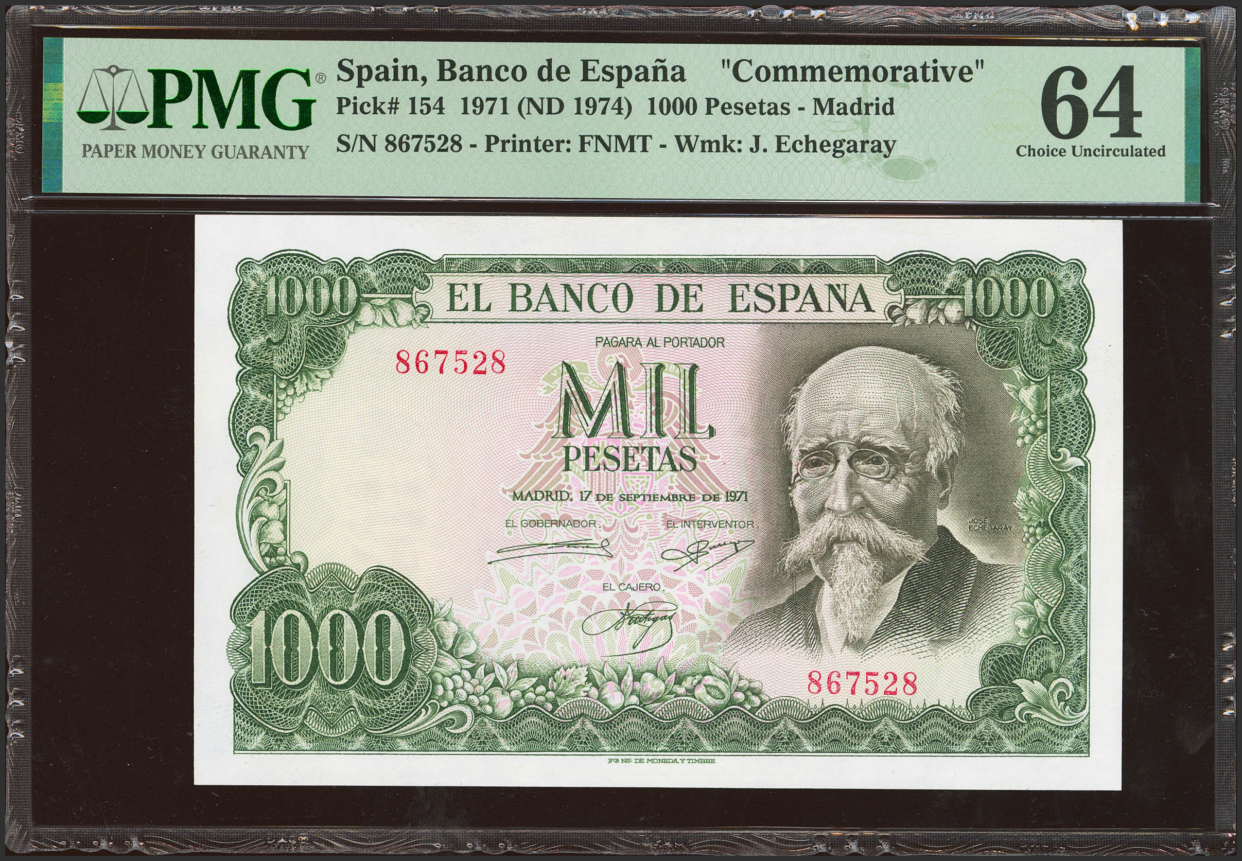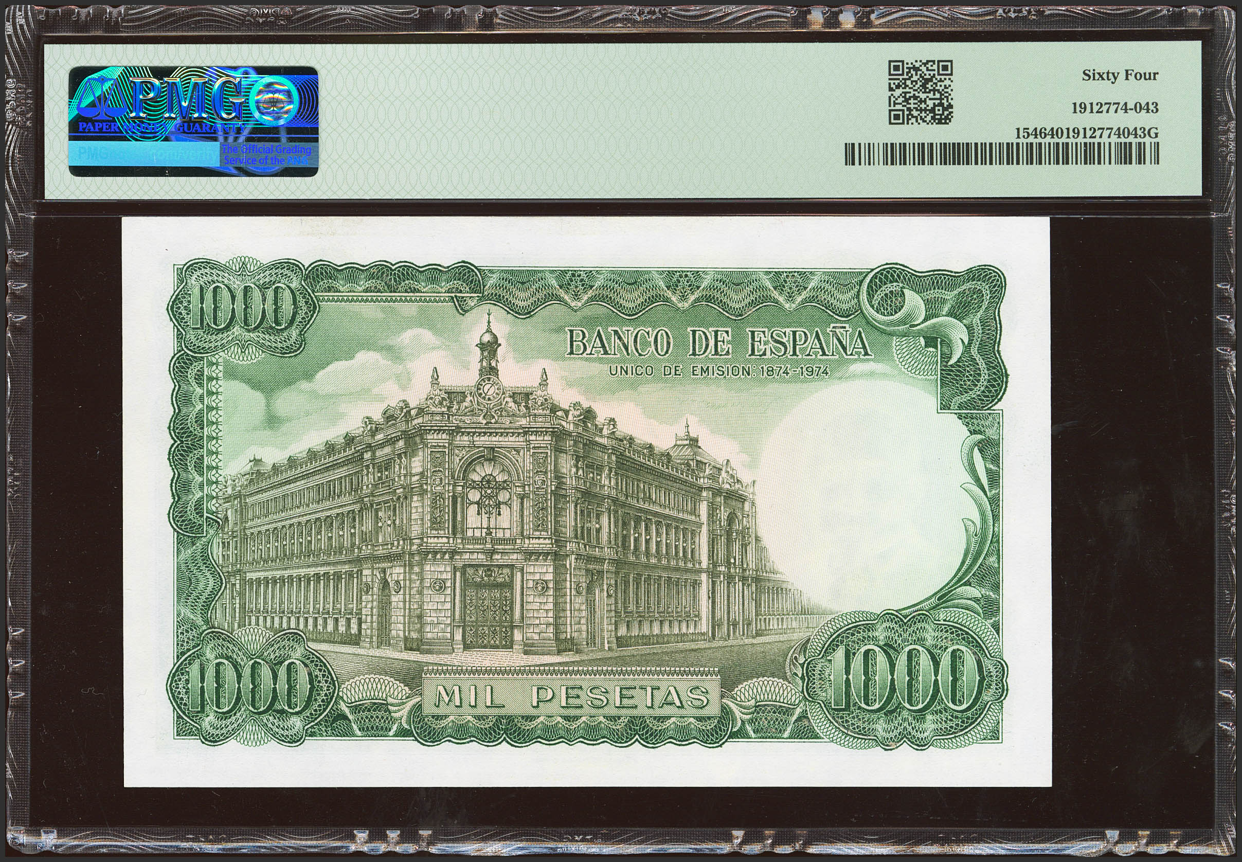 1000 Pesetas. 17 de Septiembre de 1971. Sin serie. (Edifil 2021: 474, Pick: 154). SC. Encapsulado PMG64.