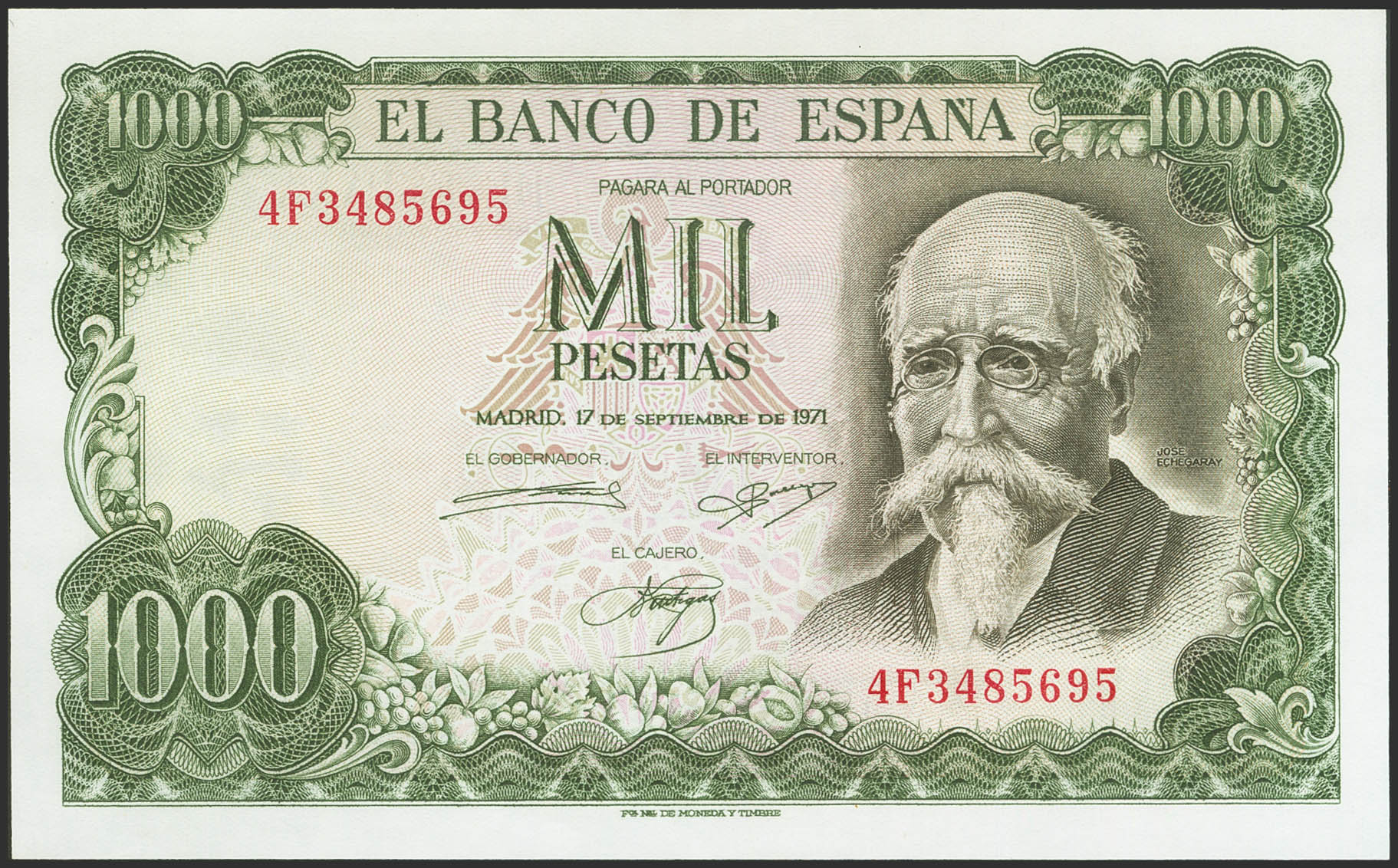 1000 Pesetas. 17 de Septiembre de 1971. Serie 4F. (Edifil 2023: 474b). Conserva todo el apresto original. SC.