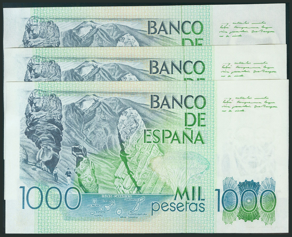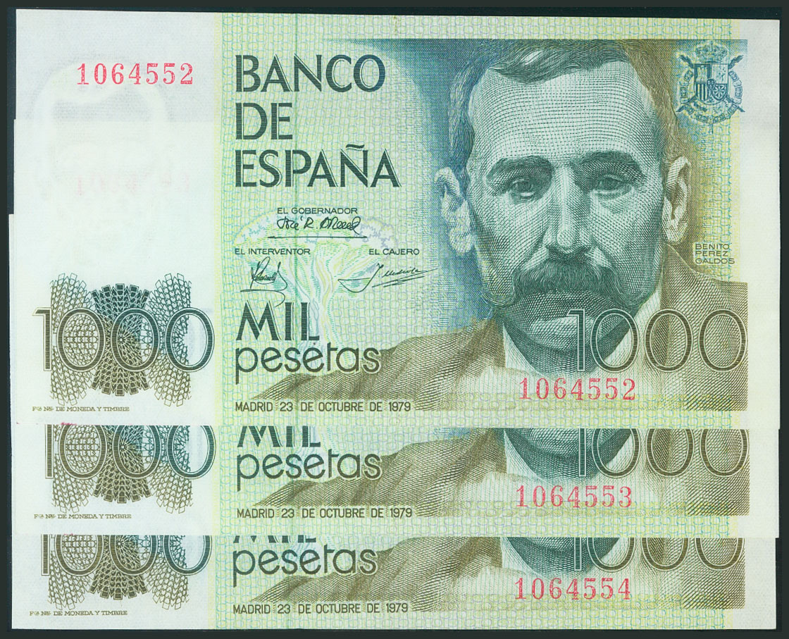 1000 Pesetas. 23 de Octubre de 1979. Trío correlativo. Sin serie. (edifil 2017: 477). SC/SC-.