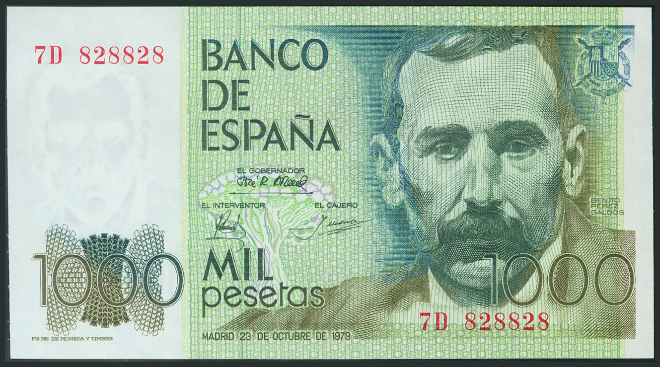 1000 Pesetas. 23 de Octubre de 1979. Serie 7D y numeración capicúa. (Edifil 2017: 477a). SC.