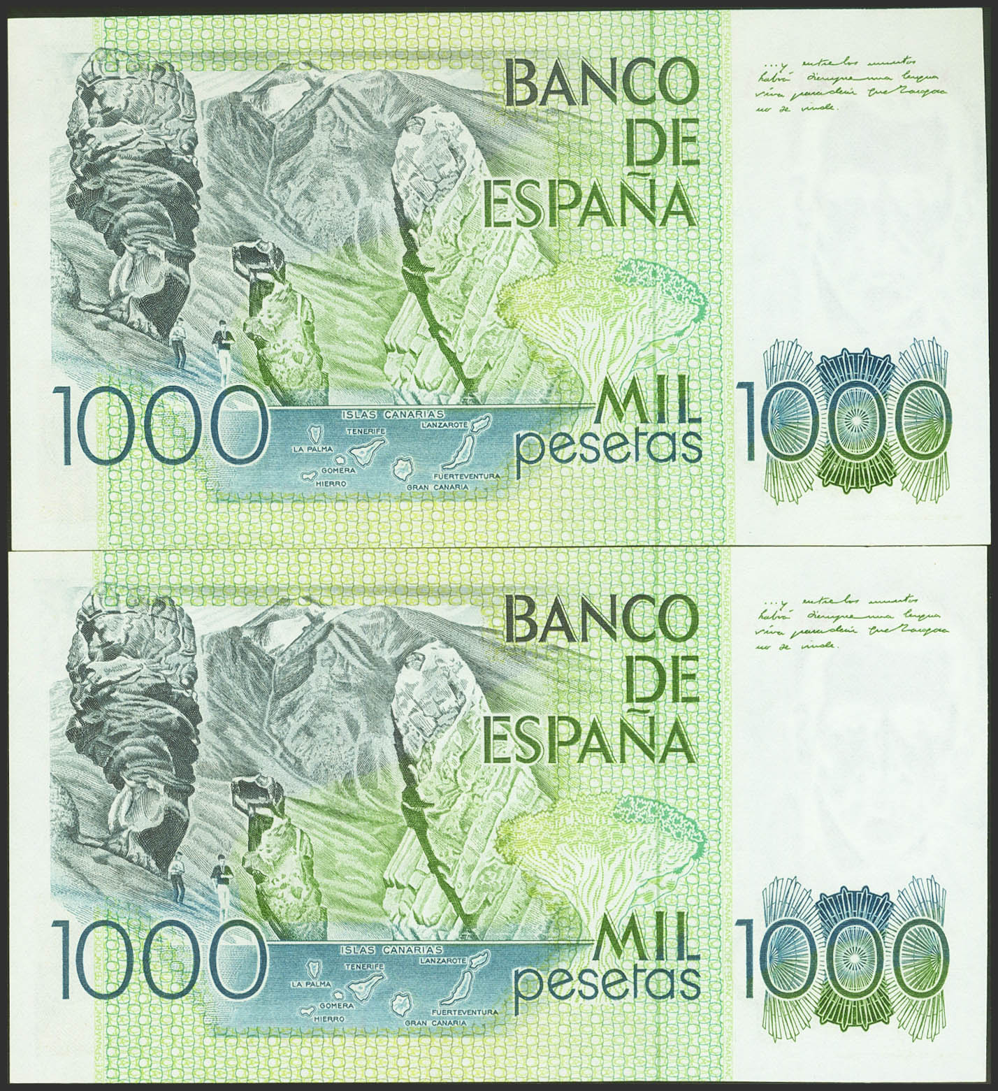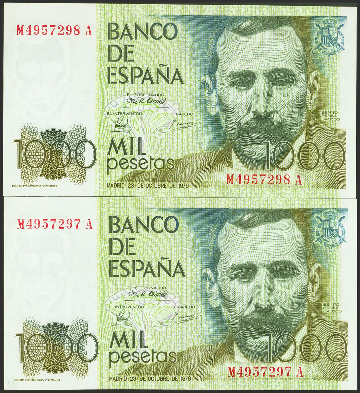 1000 Pesetas. 23 de Octubre de 1979. Pareja correlativa. Serie M-A. (Edifil 2023: 477a). SC.