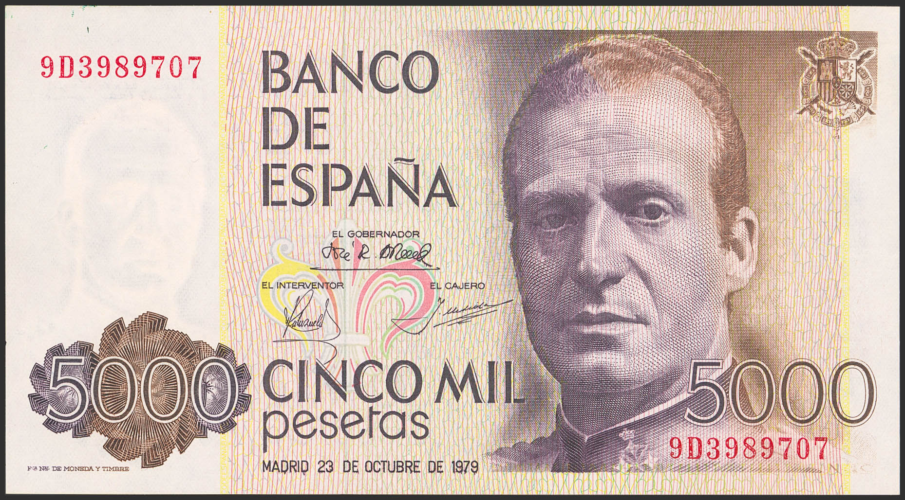 5000 Pesetas. 23 de Octubre de 1979. Serie especial 9D. (Edifil 2021: 478b). SC.