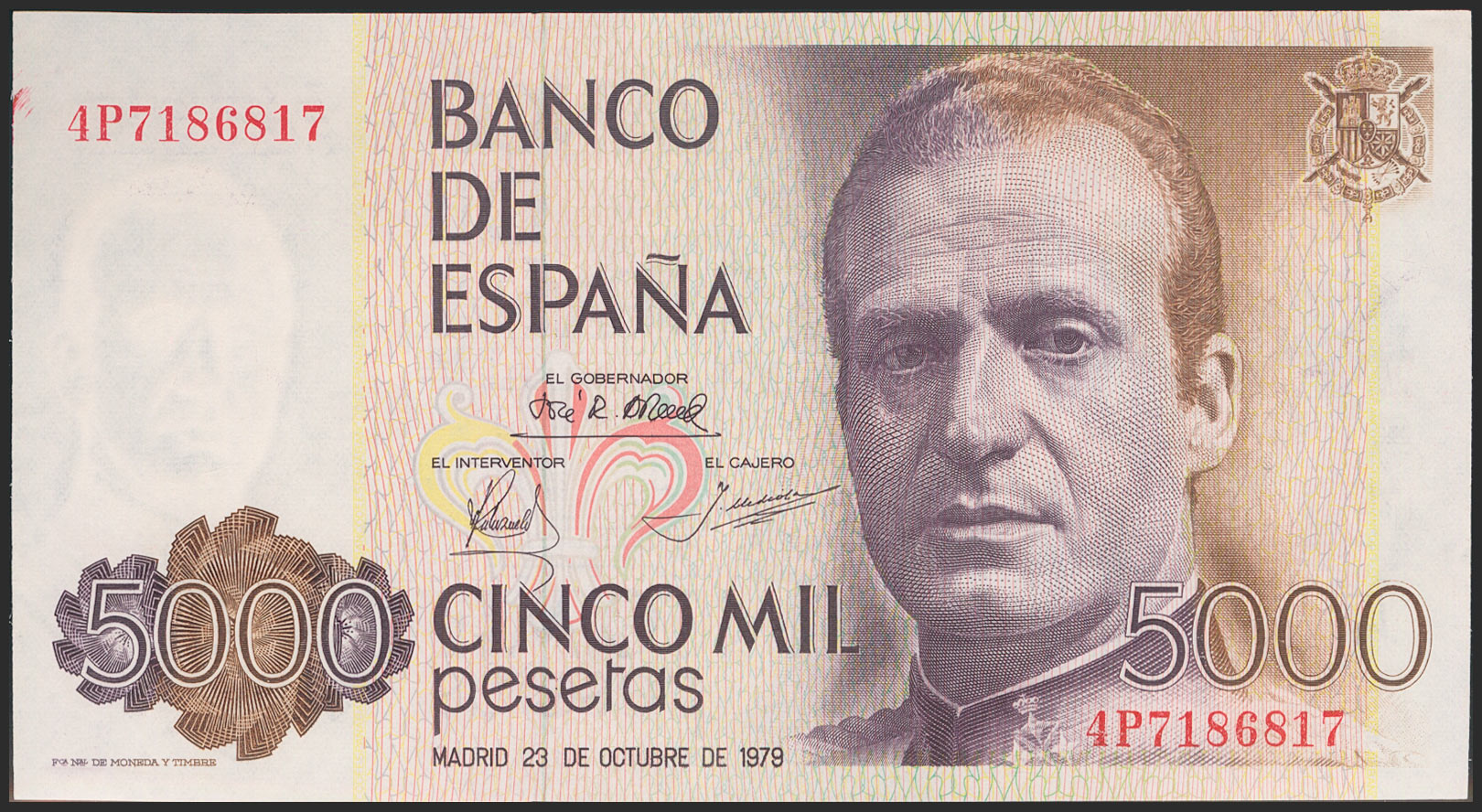 5000 Pesetas. 23 de Octubre de 1979. Serie 4P. Numeración capicúa. (Edifil 2021: 478a). SC.