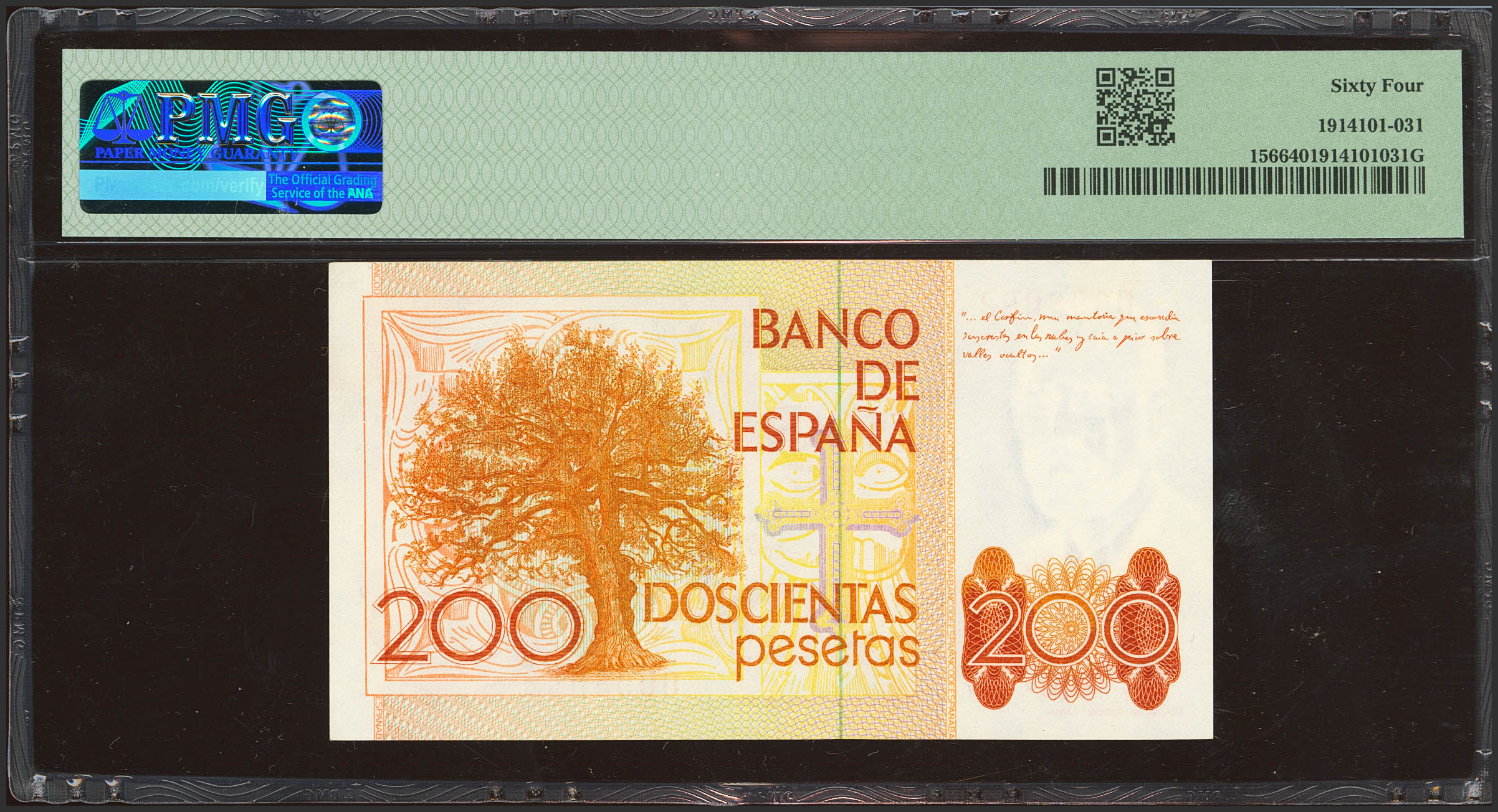 200 Pesetas. 16 de Septiembre de 1980. Sin serie. (Edifil 2023: 480, Pick: 156). SC. Encapsulado PMG64.