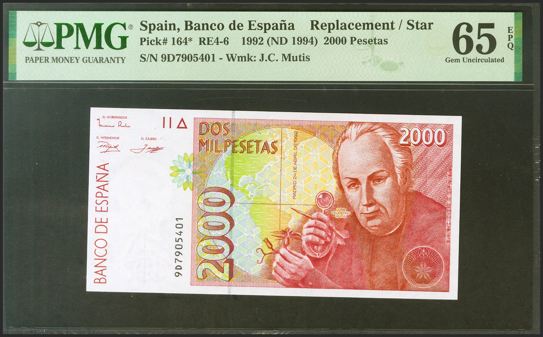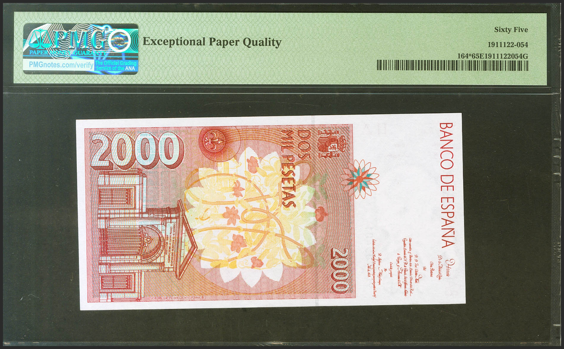 2000 Pesetas. 24 de Abril de 1992. Serie especial 9D, última serie especial emitida. (Edifil 2021: 482Ab, Pick: 164*). Raro en esta calidad, apresto original. SC. Encapsulado PMG65EPQ.