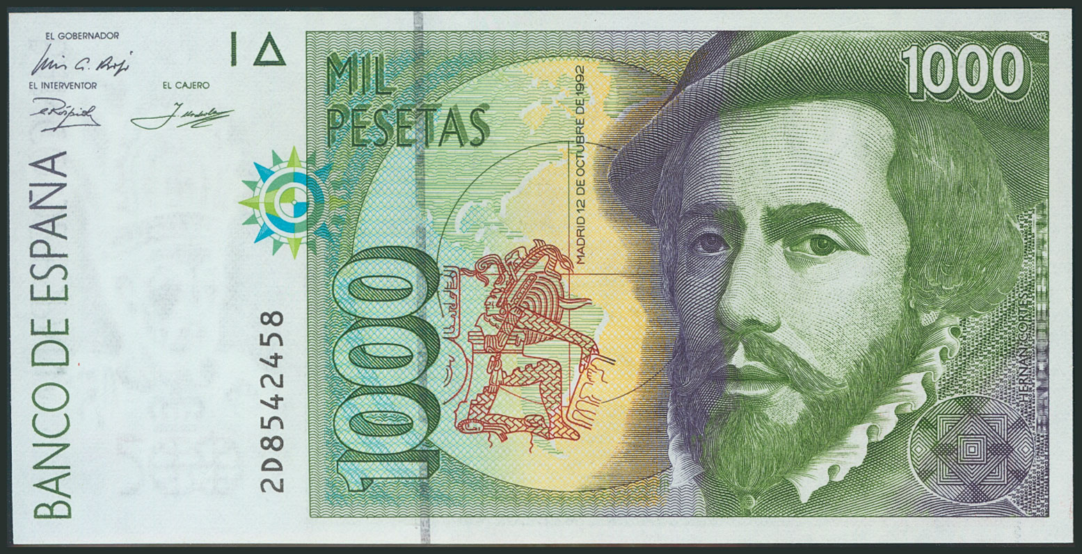 1000 Pesetas. 12 de Octubre de 1992. Tipo II. Serie 2D y numeración capicúa. (Edifil 2017: 483a). SC.