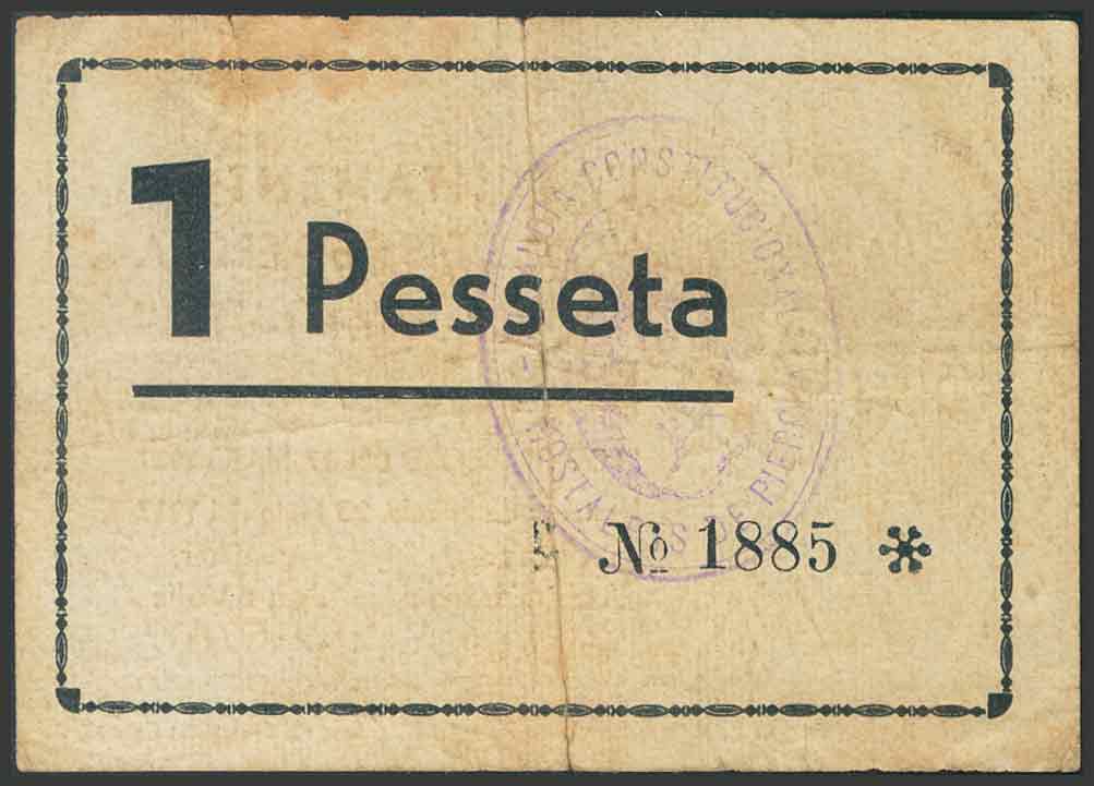 HOSTALETS DE PIEROLA. (BARCELONA). 1 Peseta. 25 de Mayo de 1937. (González: 8230, Montaner: 768C). BC. Escaso.