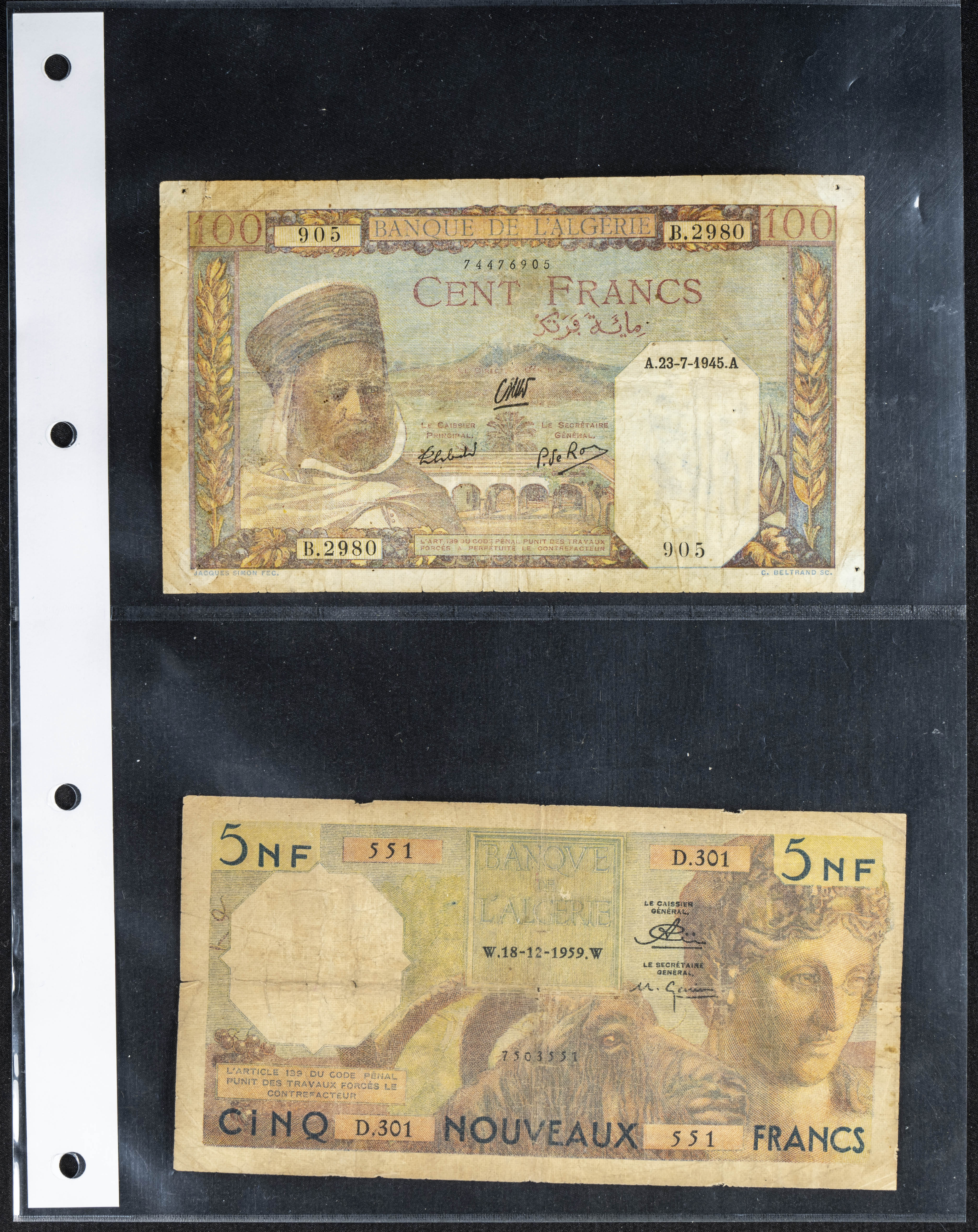 Set of 7 banknotes from Algeria of various issues, different qualities. TO EXAM.