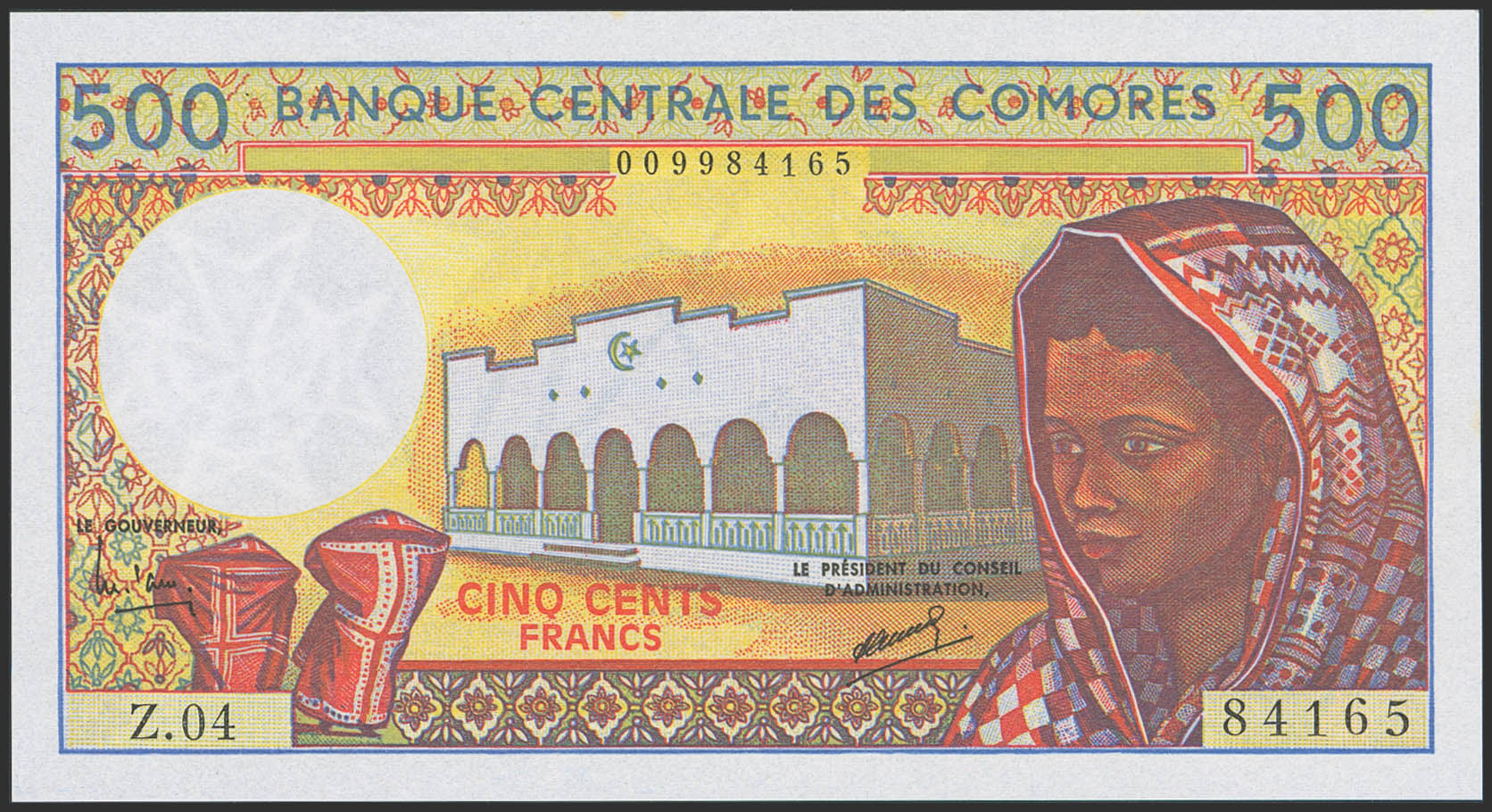 COMOROS. 500 Francs. (1986ca). (Pick: 10a). Less than Uncirculated.