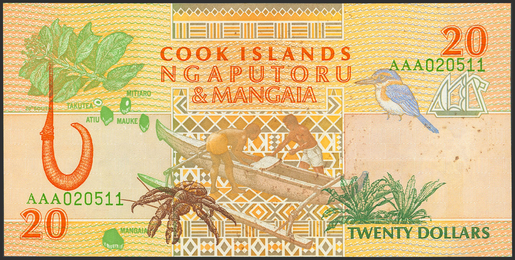 COOK ISLANDS. 20 Dollars. (1992ca). (Pick: 9a). Less than Uncirculated.