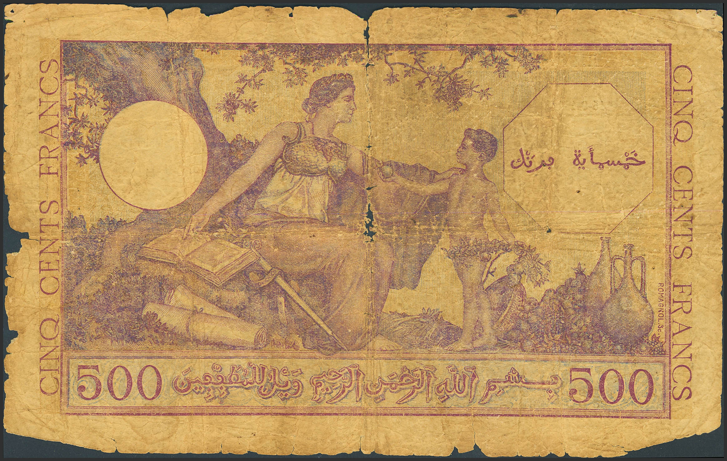 ALGERIA. 500 Francs. 15 September 1944. (Pick: 95). Good.