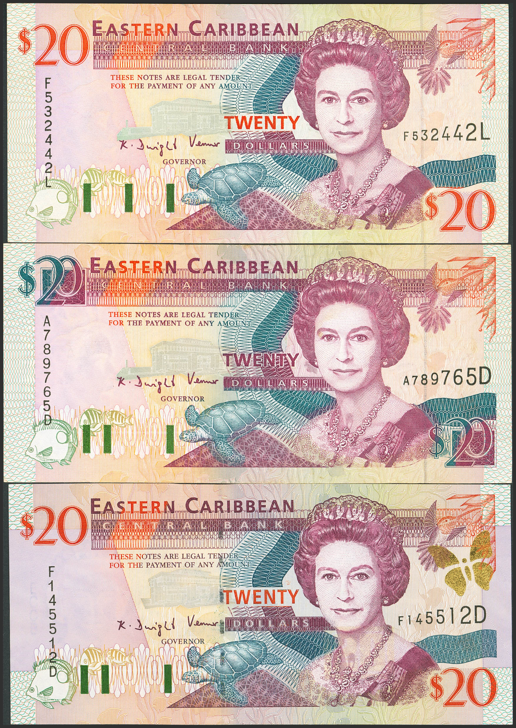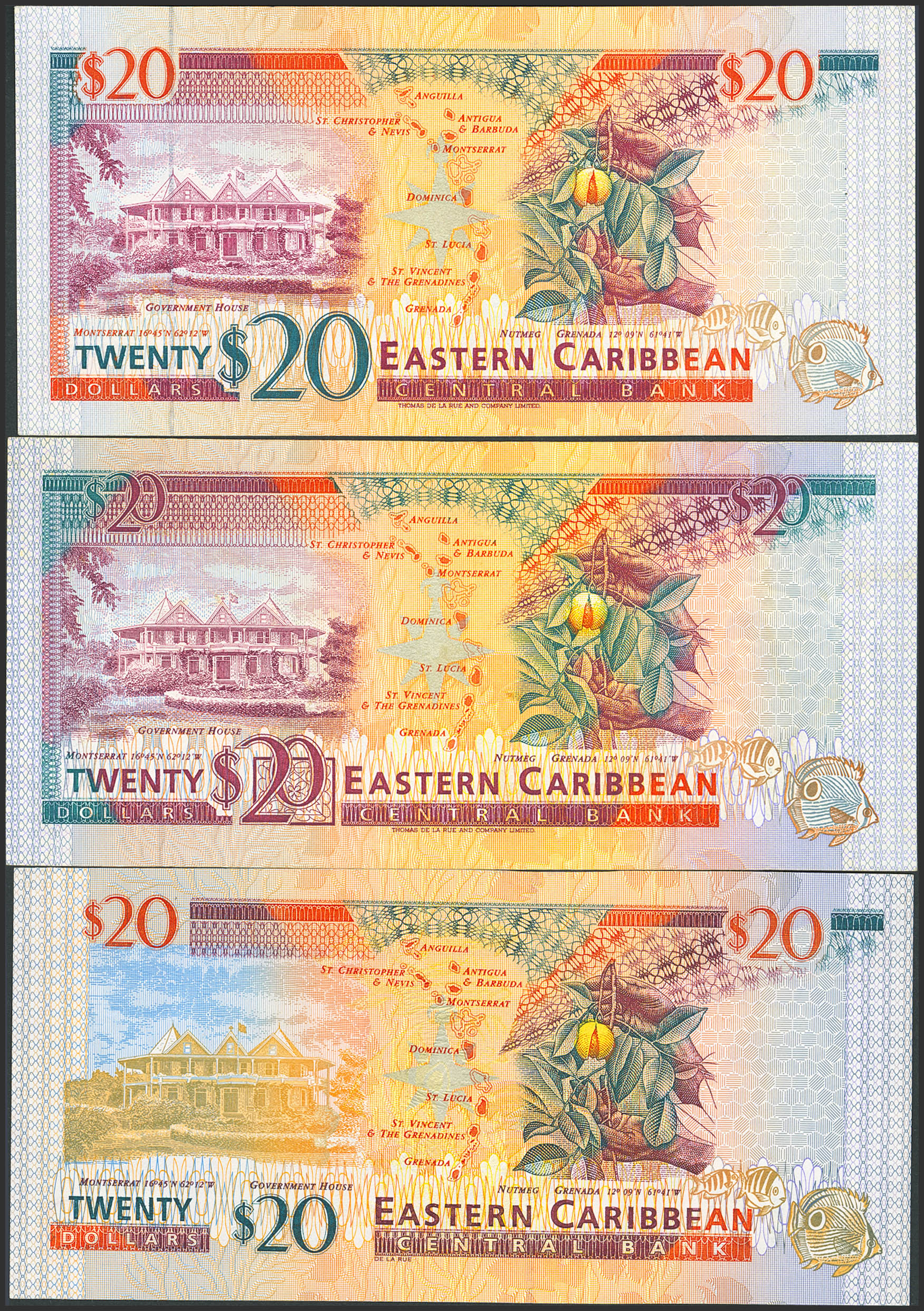 EAST CARIBBEAN. 20 Dollars (3). (1994ca). (Pick: 39, 33(2)). Less than Uncirculated / Less than Very Fine.