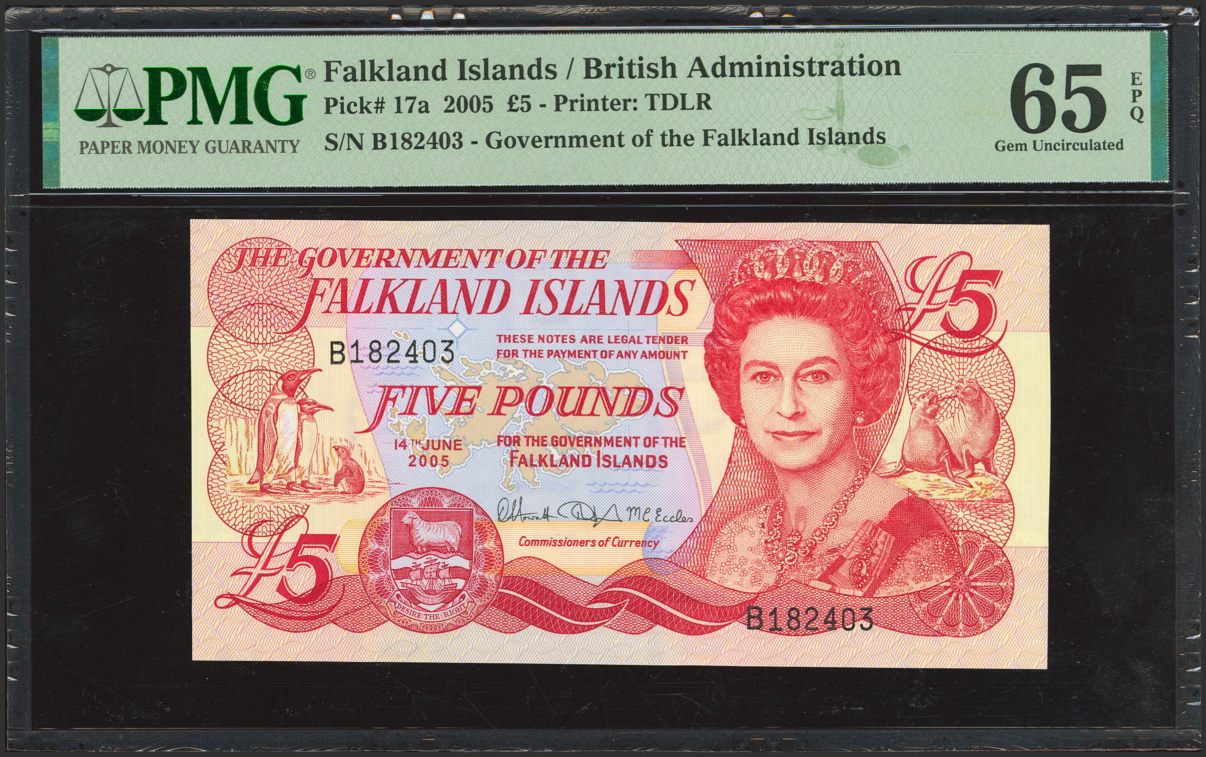FALKLAND ISLANDS. 5 Dollars. 2005. (Pick: 17a). PMG65EPQ.