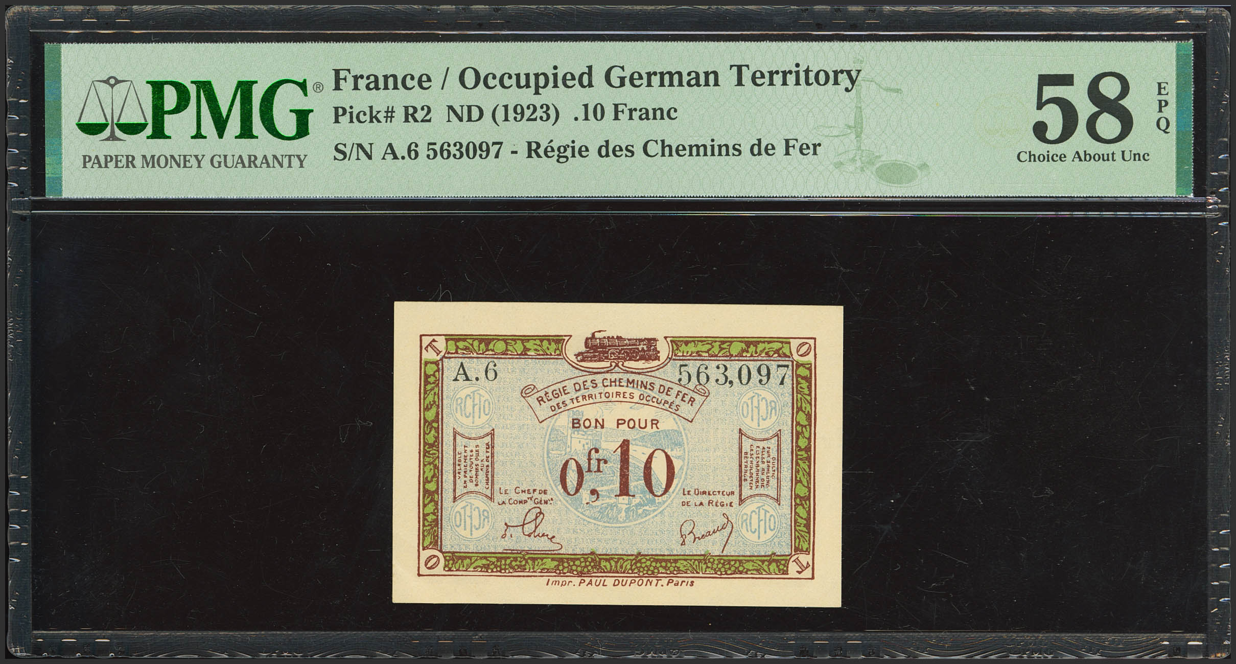 FRANCE. 0´10 Francs. Occupied german territory WWI. (1923ca). (Pick: R2). PMG58EPQ.