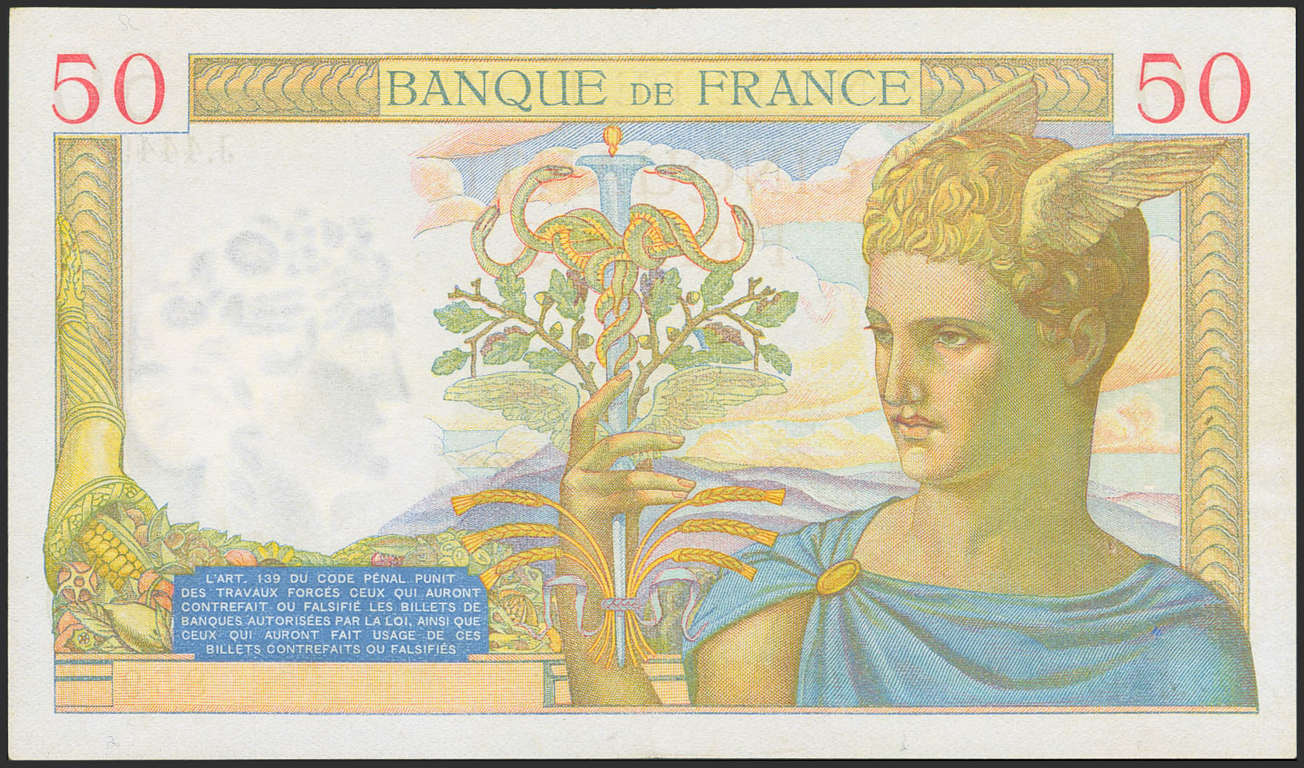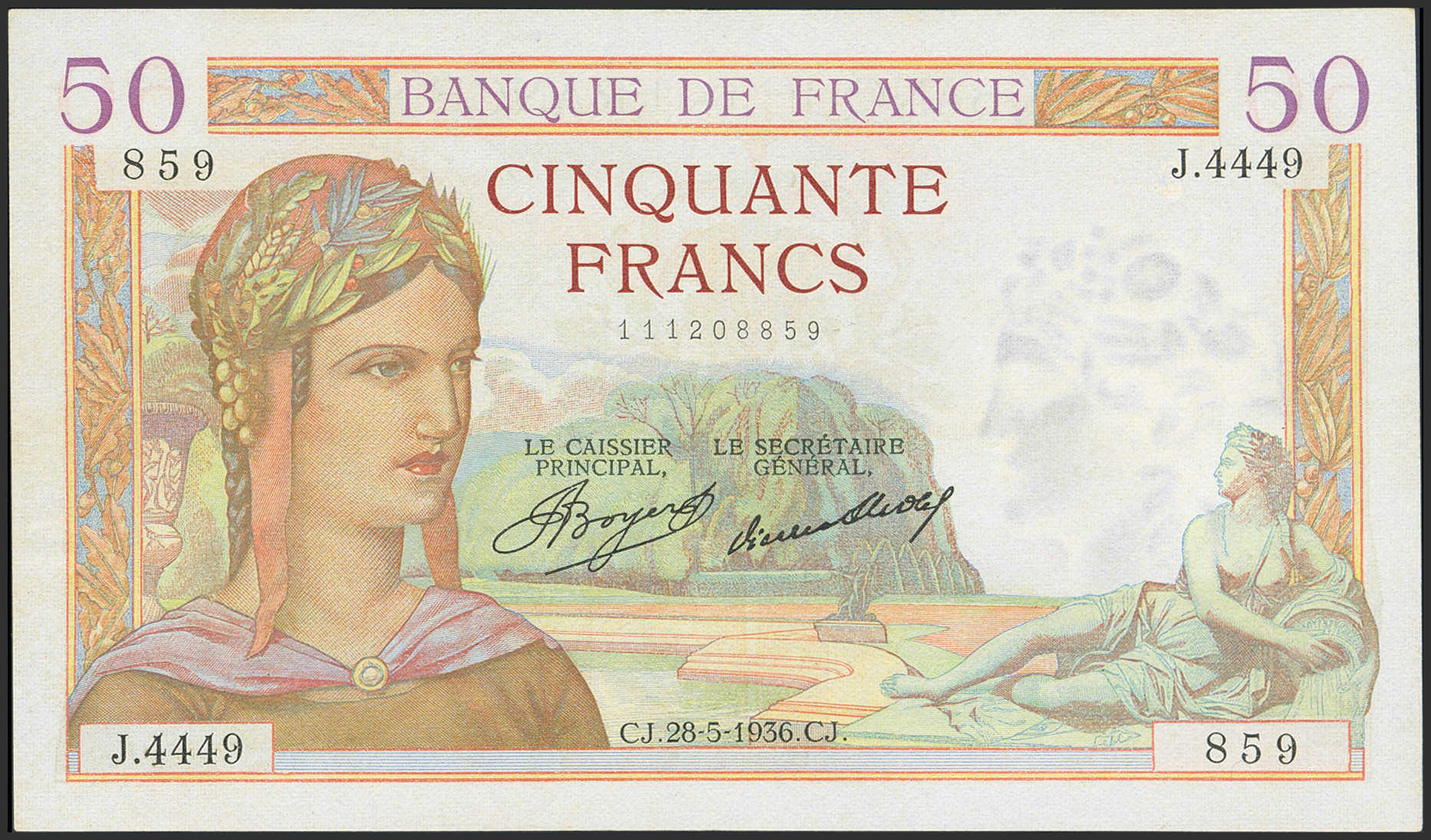 FRANCE. 50 Francs. 28 May 1936. (Pick: 81). Minor repairs. Less than Extremely Fine.