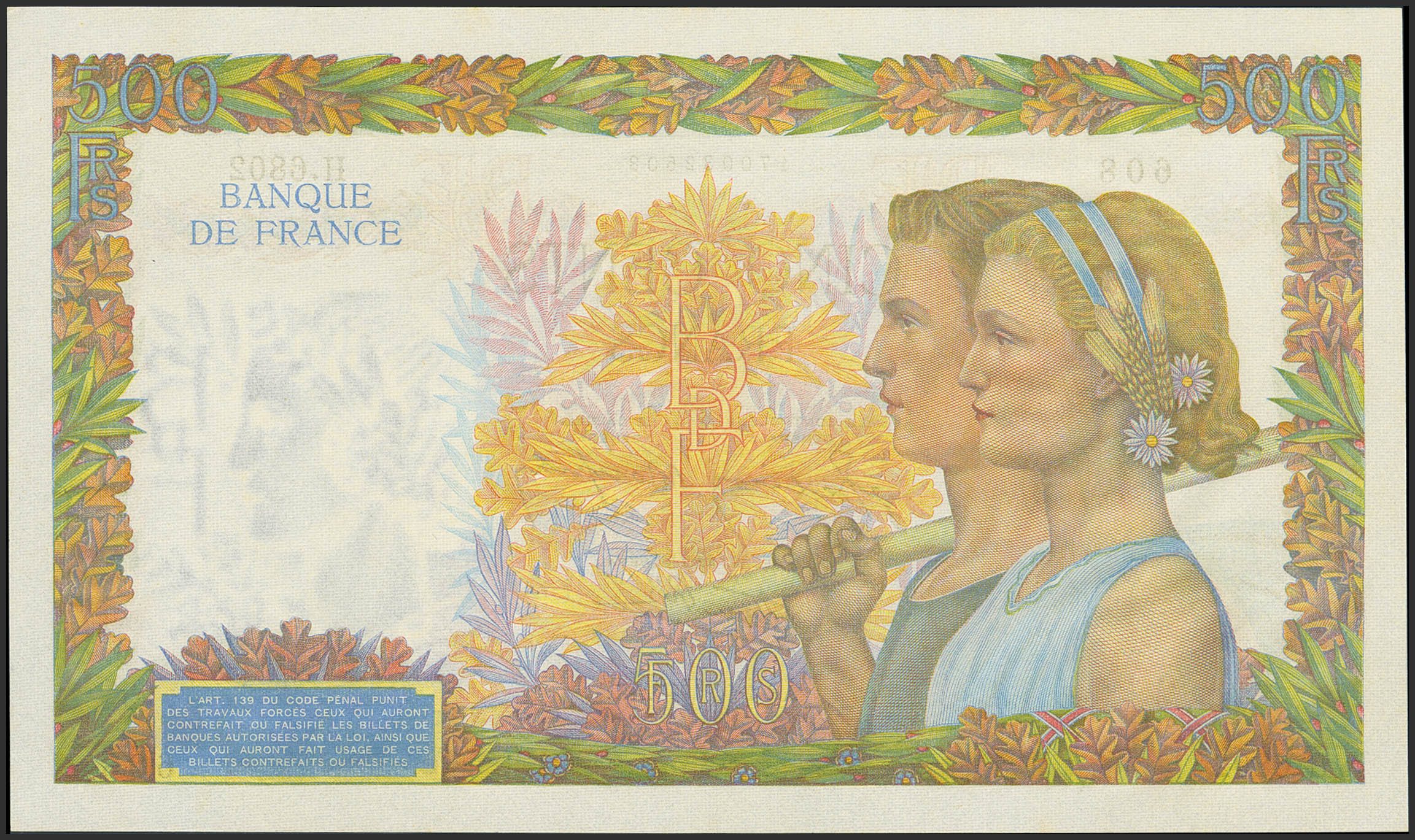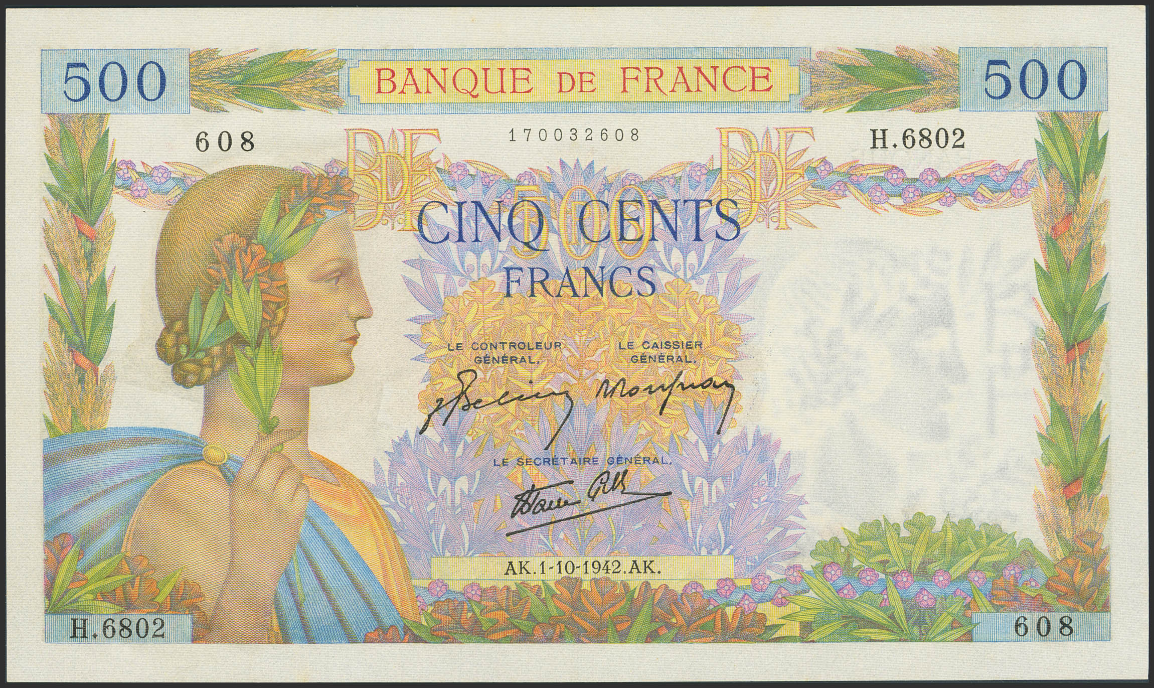 FRANCE. 500 Francs. 1 October 1942. (Pick: 95). Unusual, in this exceptional quality. Uncirculated.