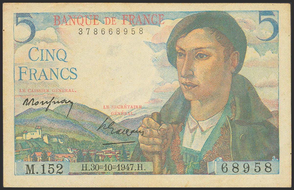 FRANCE. 5 Francs. 30 October 1947. (Pick: 98). Less than Extremely Fine.