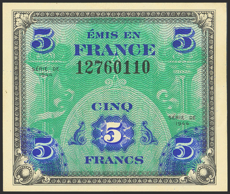FRANCE. 5 Francs. 1944. (Pick: 115). Less than Uncirculated.