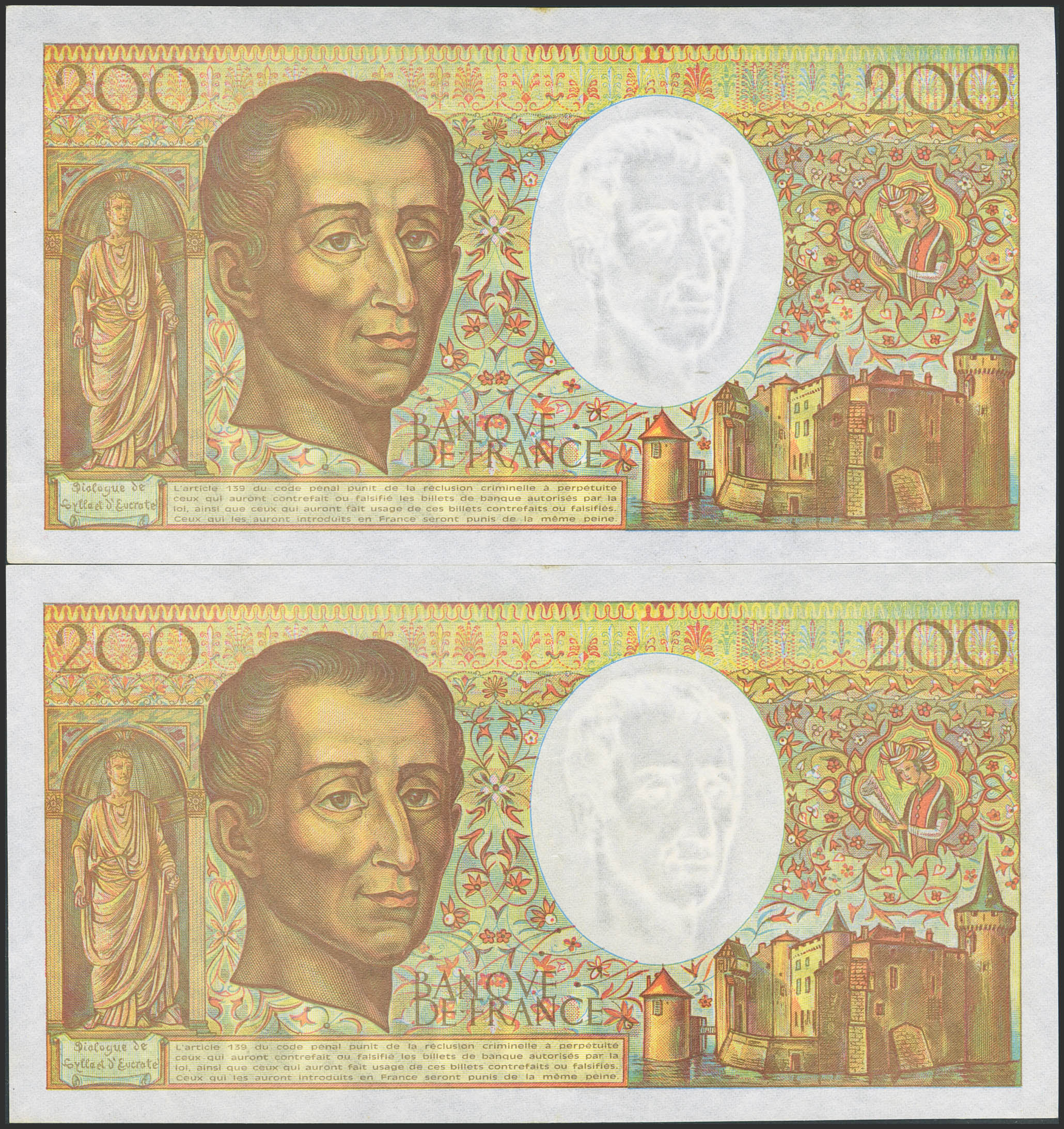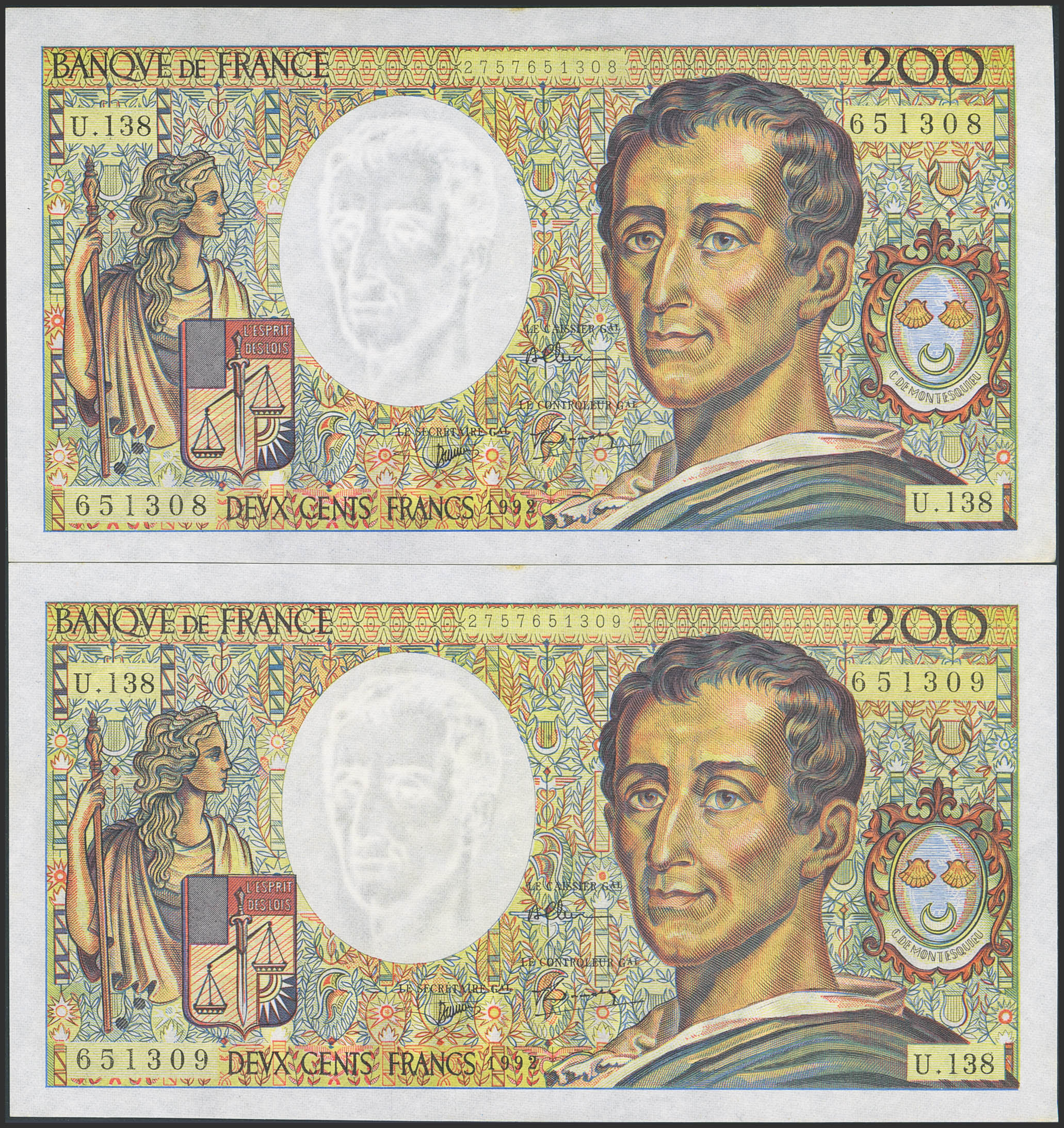 FRANCE. 200 Francs. 1992. Correlative pair. (Pick: 155). More than Very Fine.