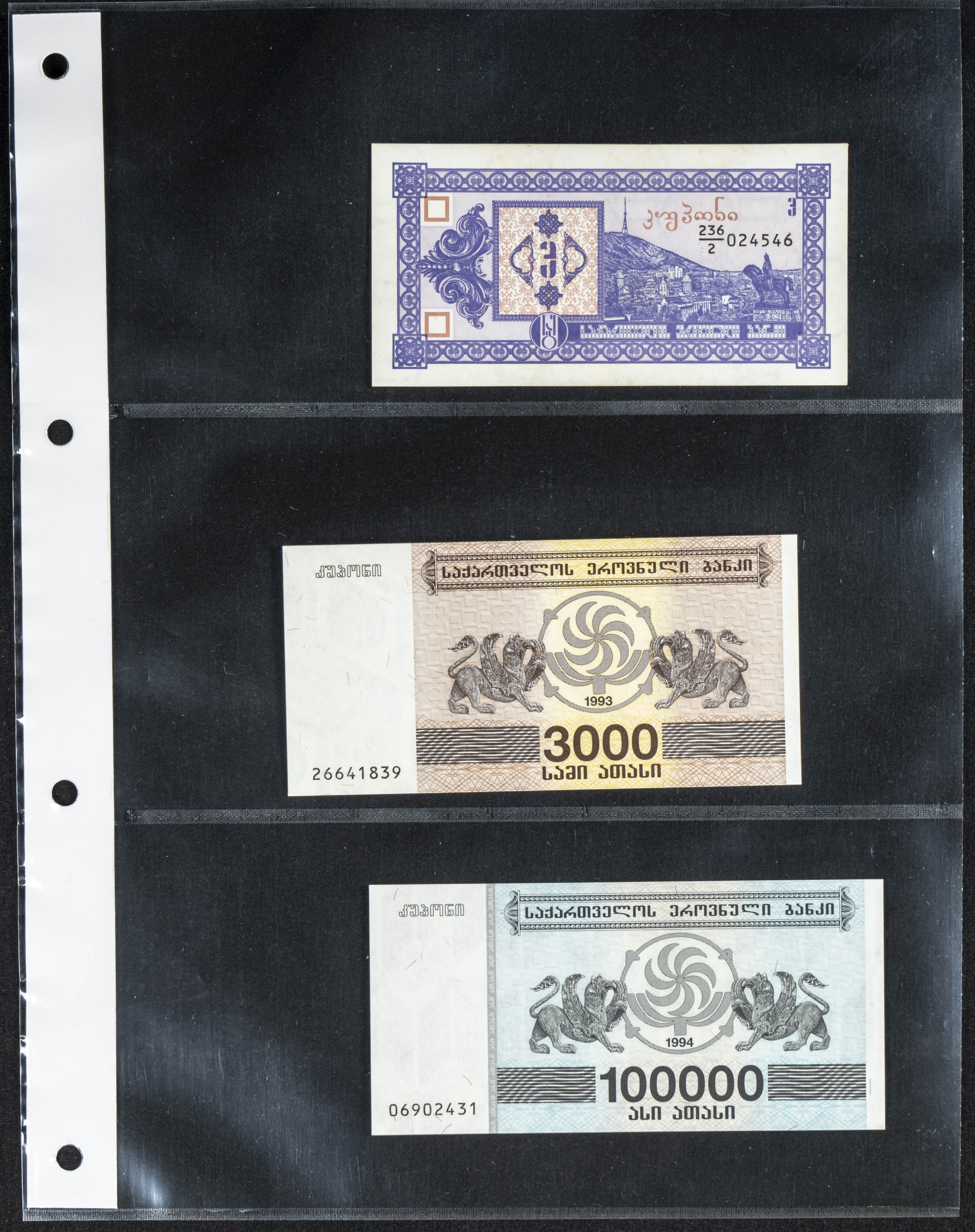 Set of 5 banknotes from Georgia of various issues, most of them nice qualities. TO EXAM.