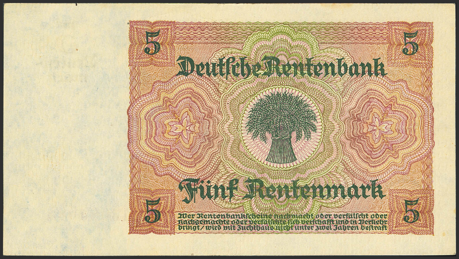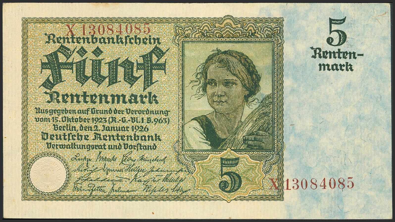 GERMANY. 5 Rentenmark. 1926. (Pick: 169). Extremely Fine.