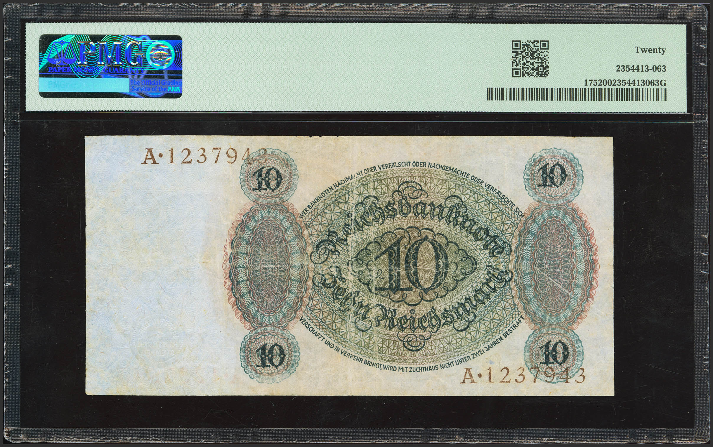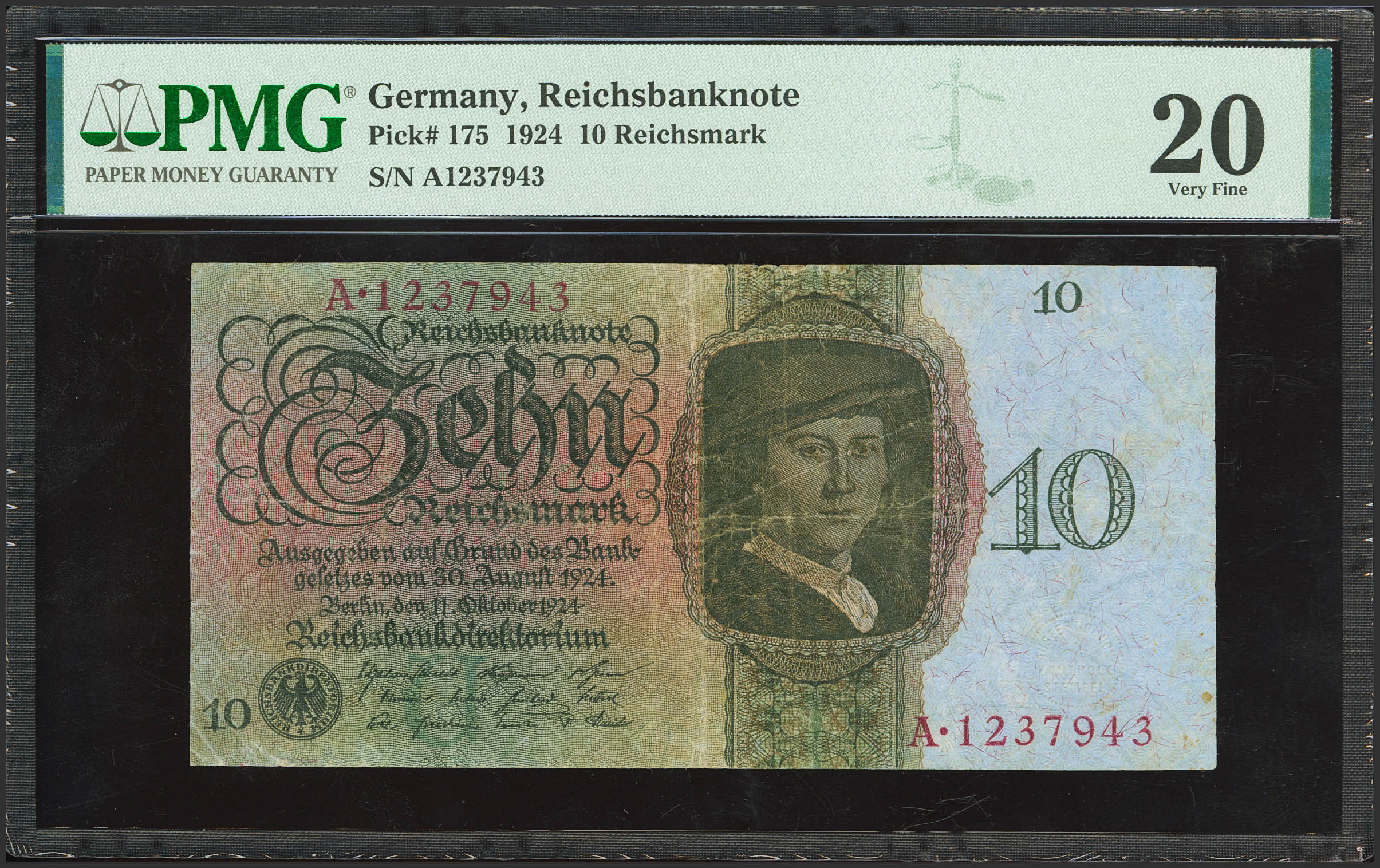 GERMANY. 10 Reichsmark. 11 October 1924. (Pick: 175). Rare. PMG20.
