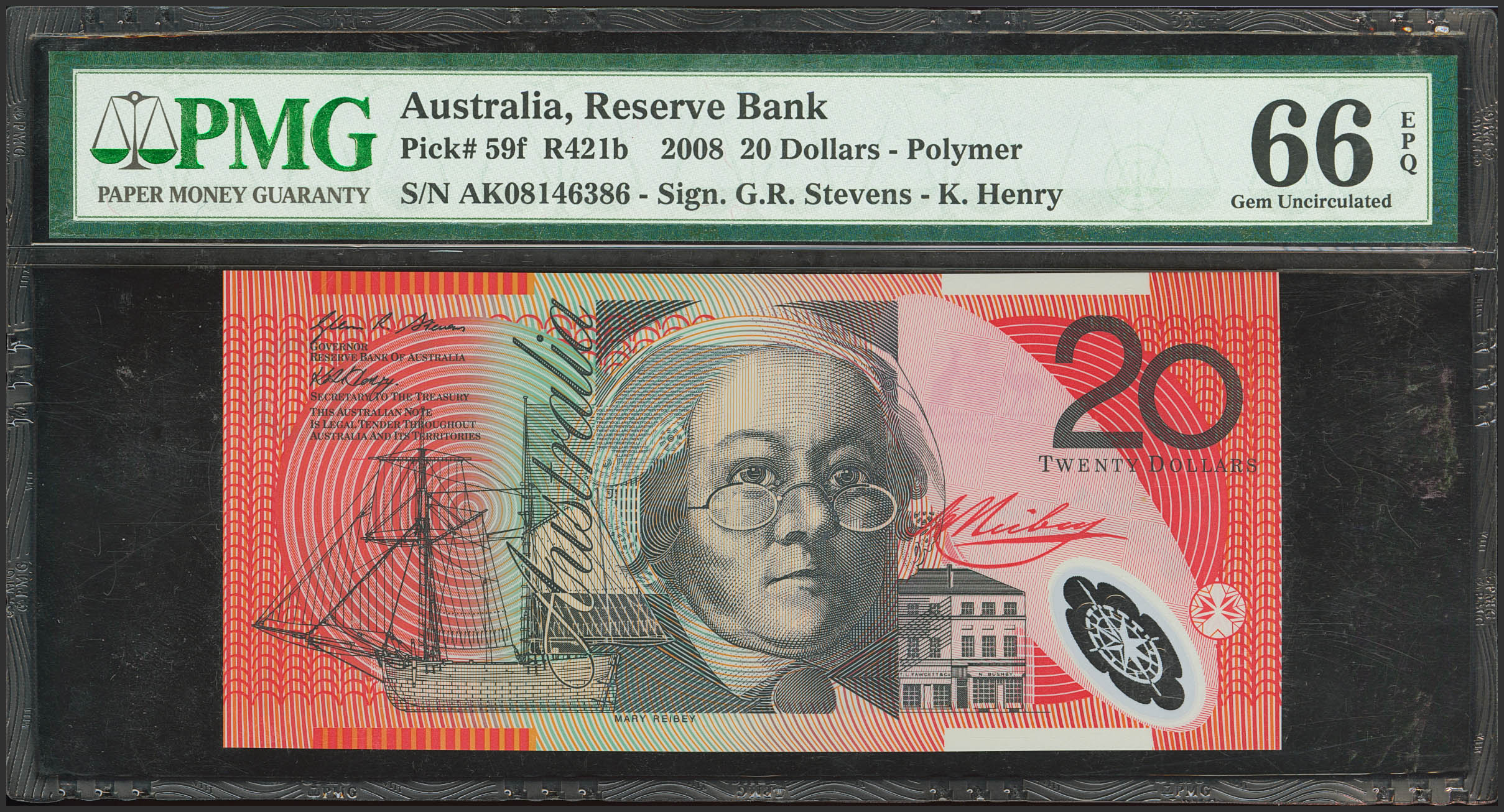 AUSTRALIA. 20 Dollars. 2008. (Pick: 59f). PMG66EPQ.