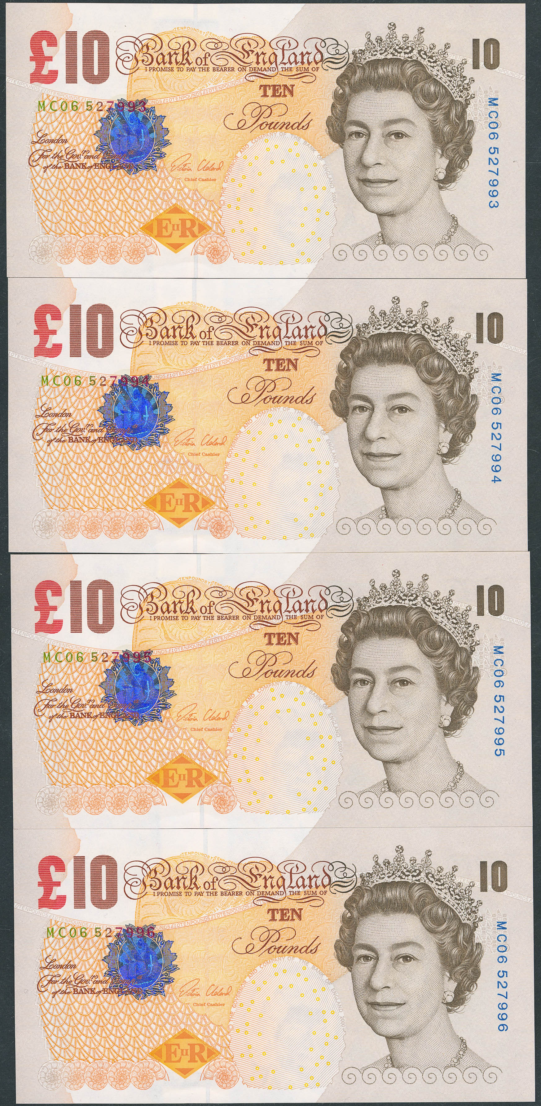 Set of 4 banknotes correlative of Great Britain of 10 Pounds. (2000ca). (Pick: 389). Less than Uncirculated.