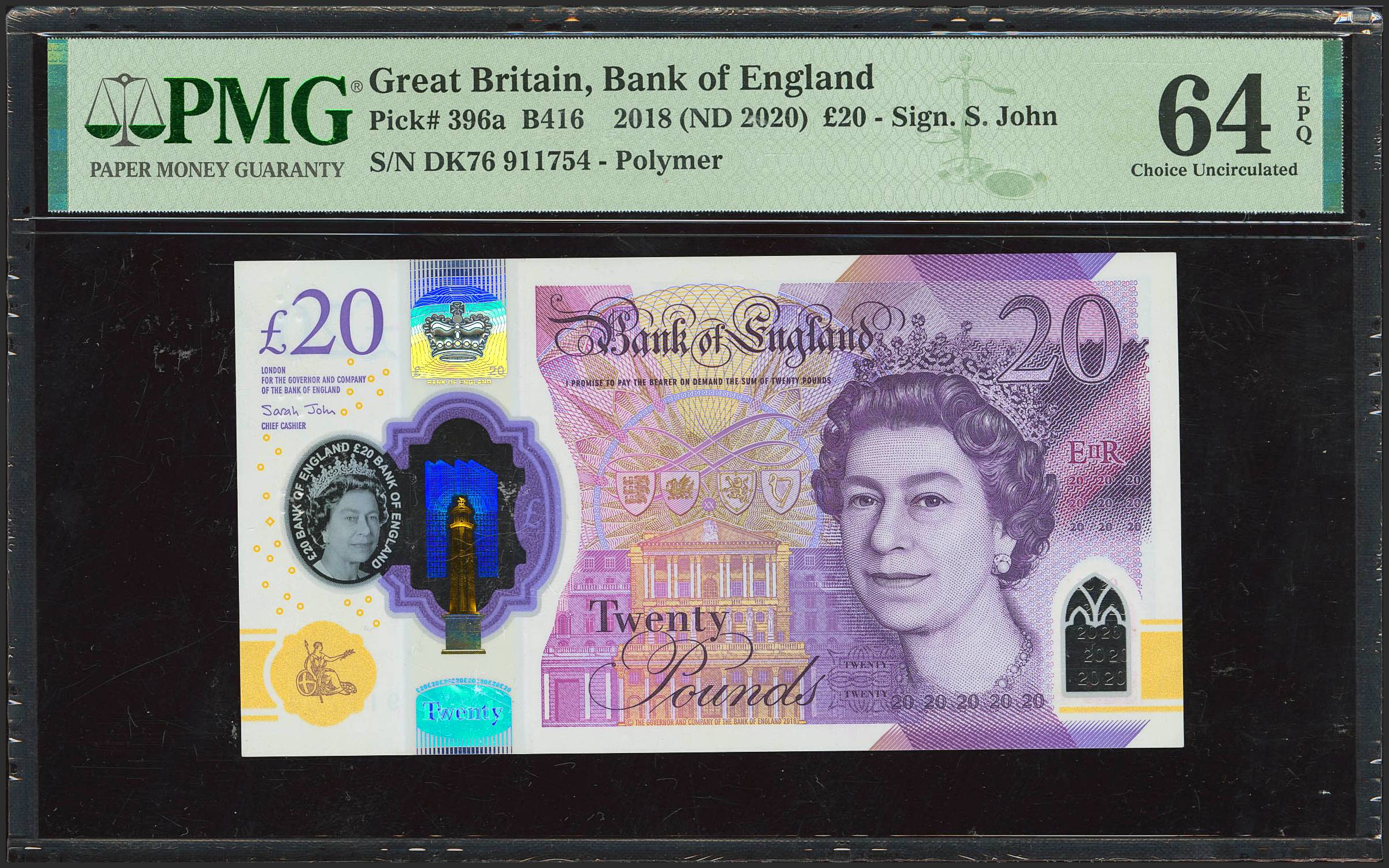 GREAT BRITAIN. 20 Pounds. 2018. (Pick: 396a). PMG64EPQ.