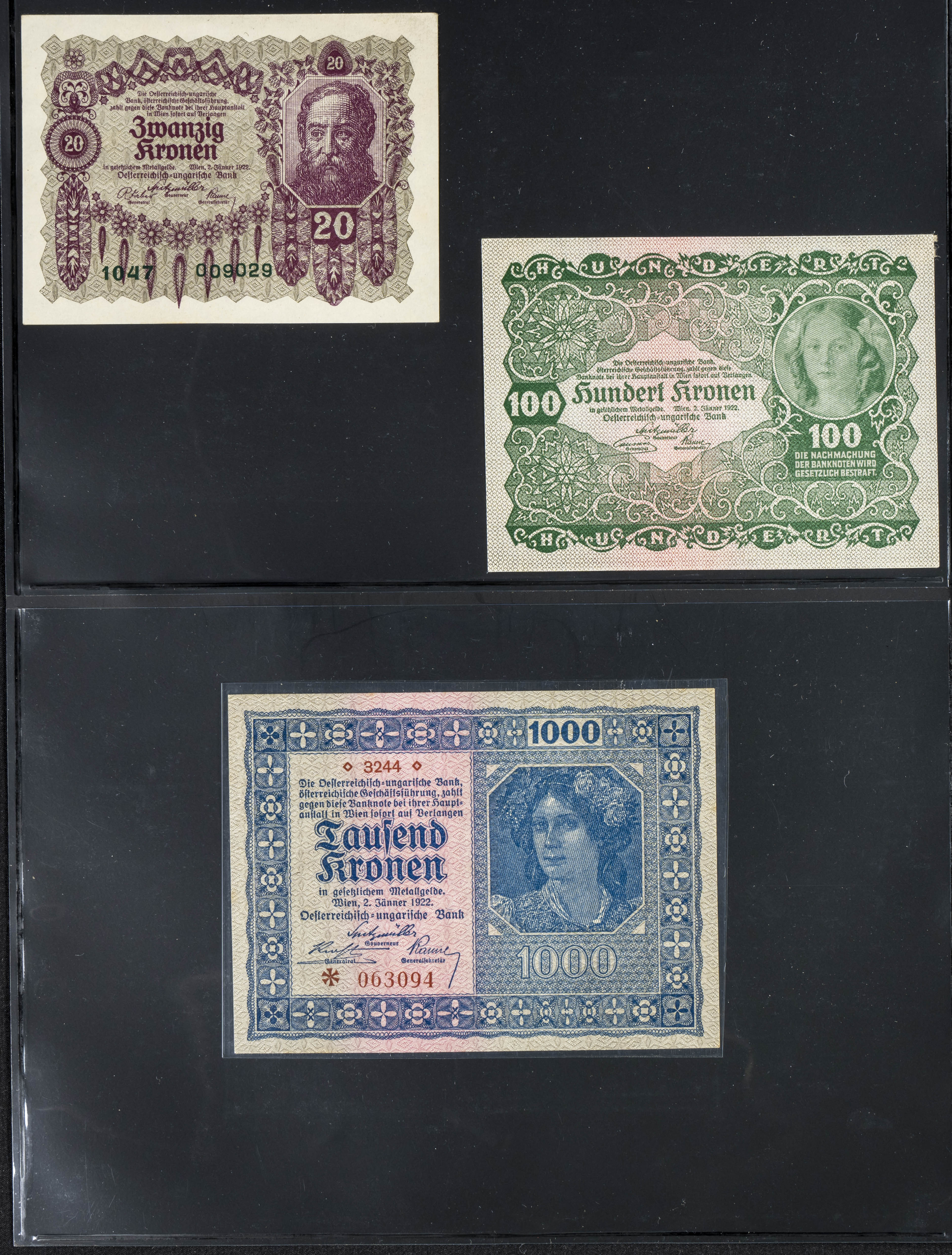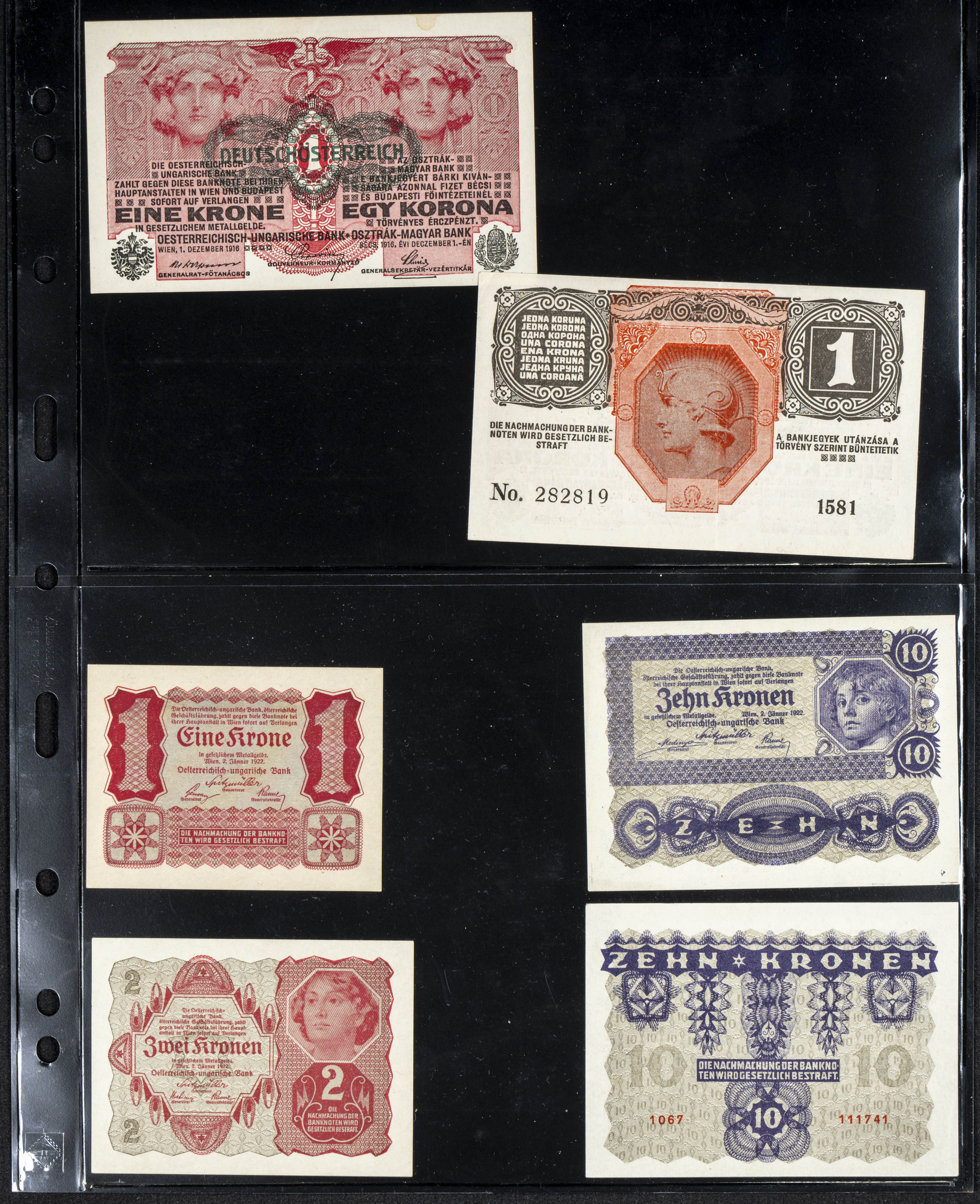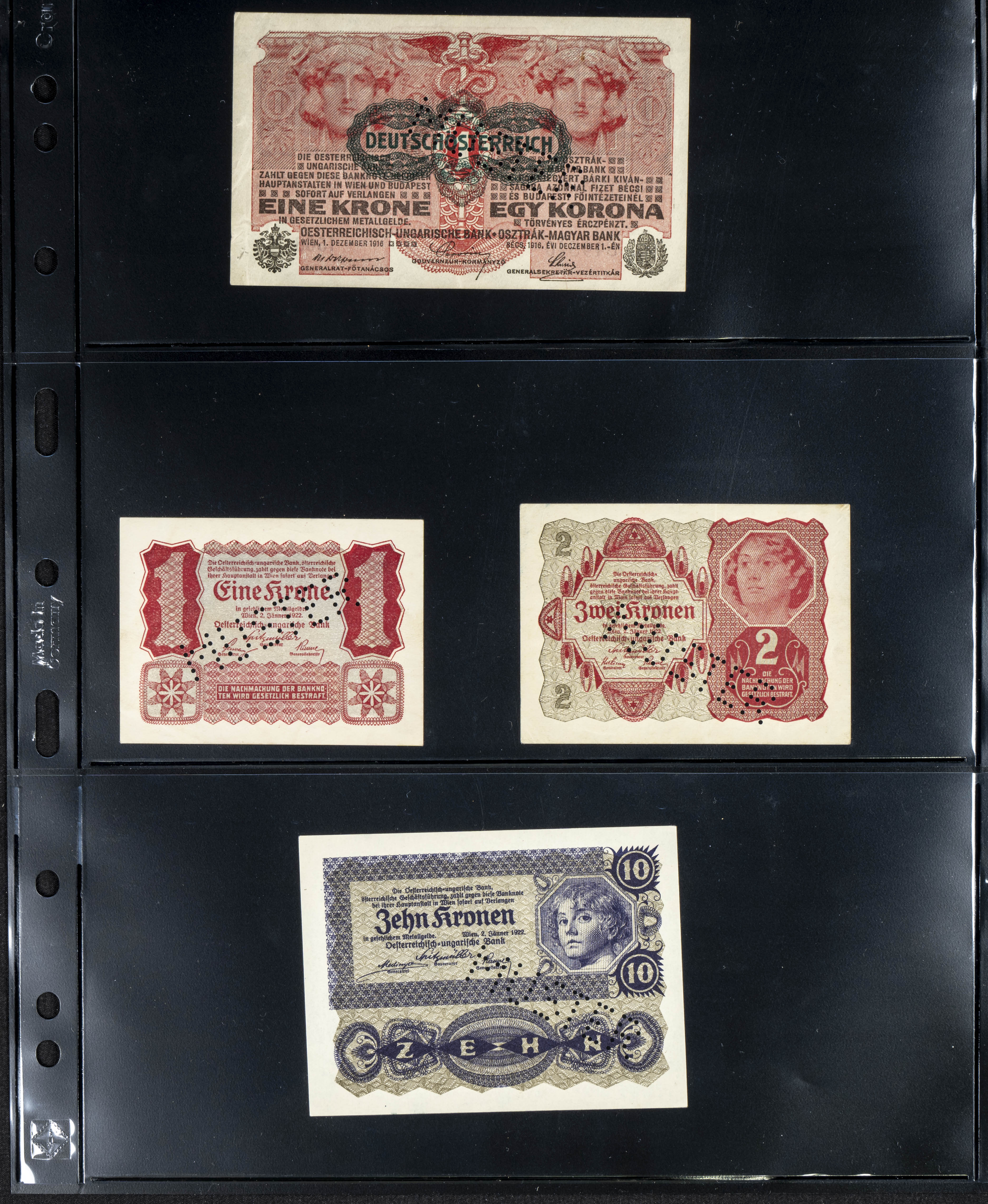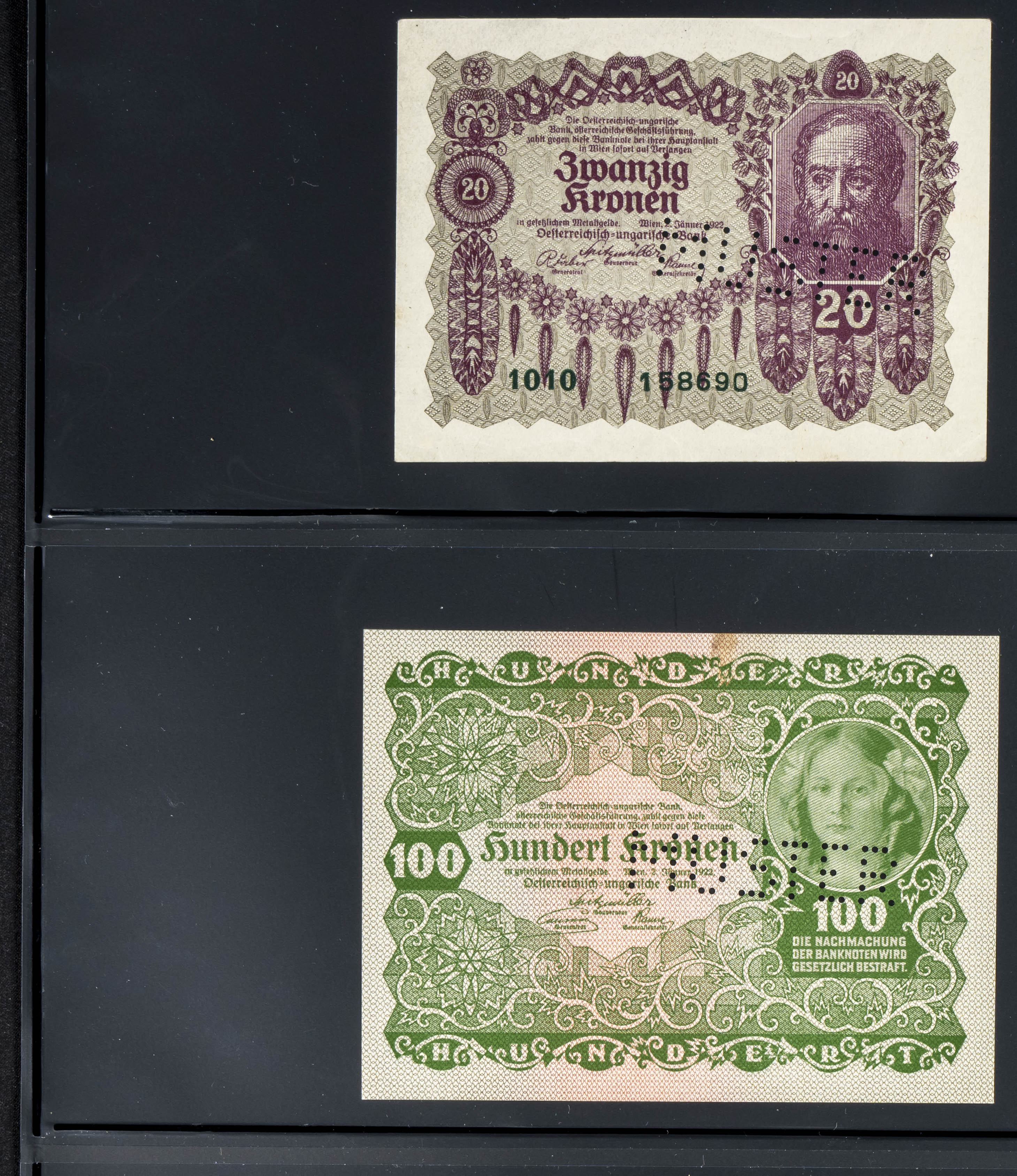 Set of 15 banknotes from Austria of various issues, different qualities, includes "MUSTER". TO EXAM.