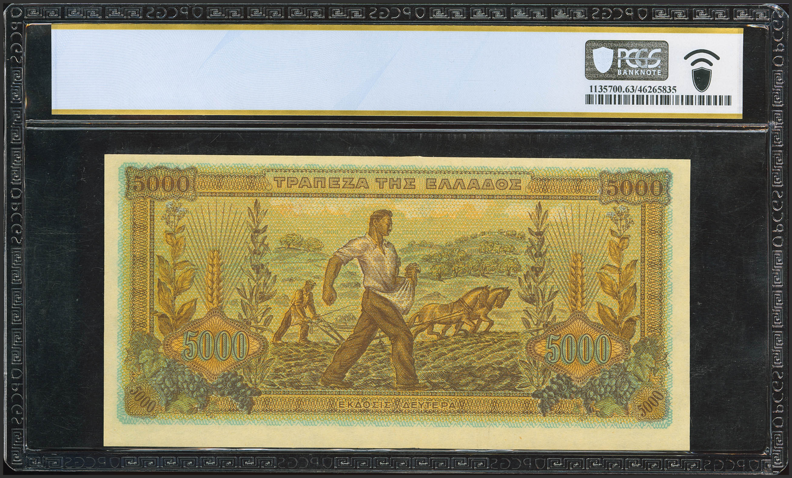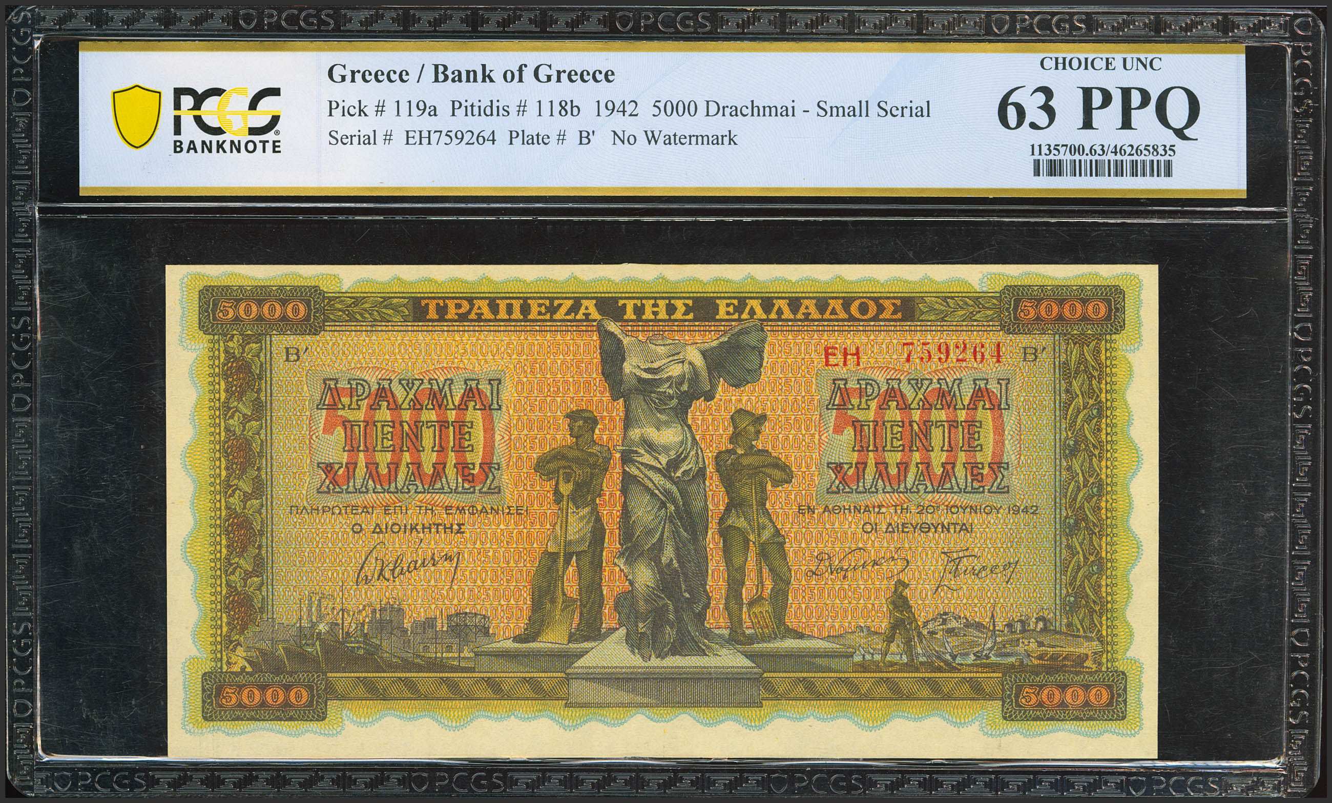 GREECE. 5000 Drachmai. 1942. (Pick: 118b). PCGS63PPQ.
