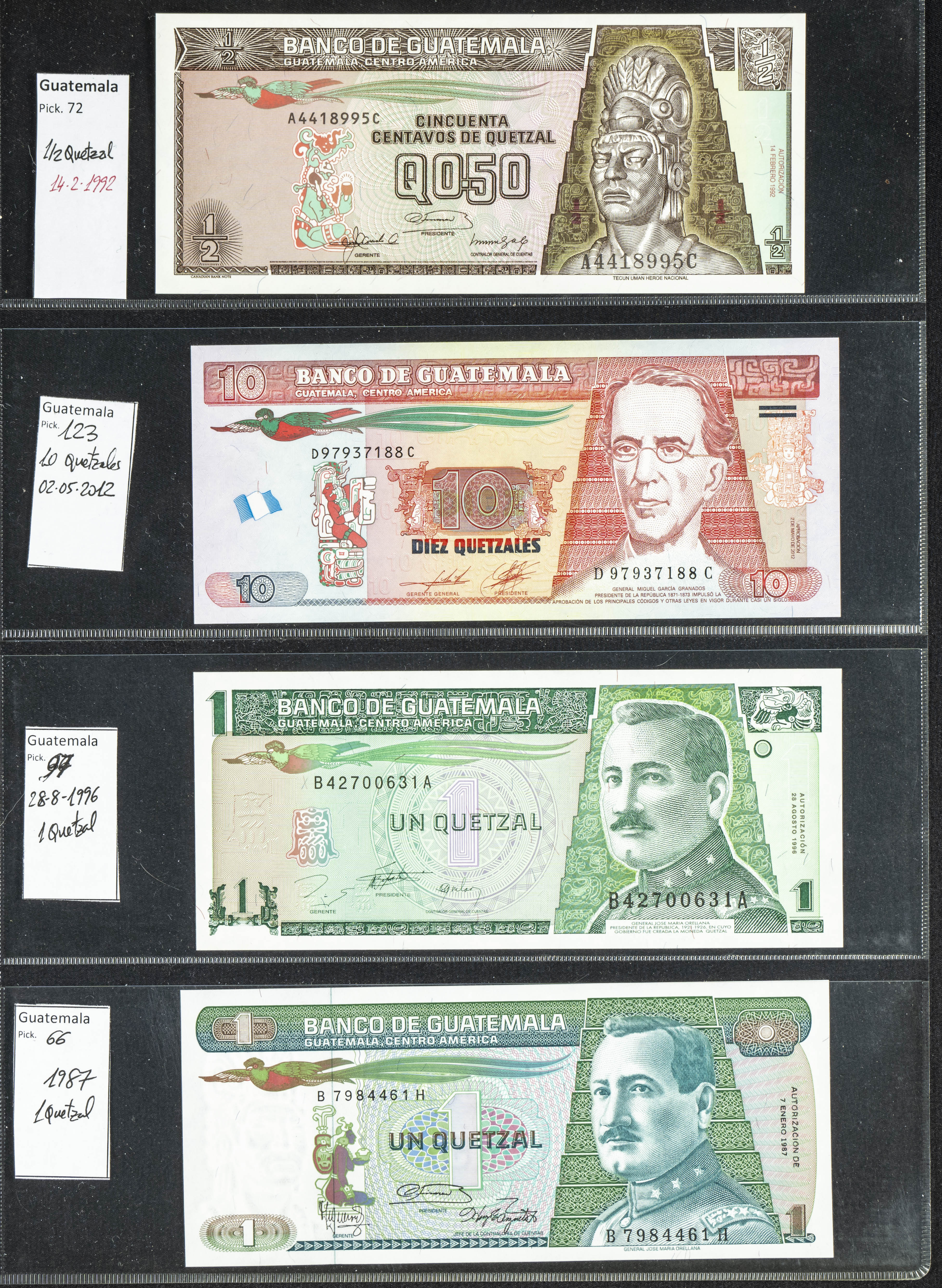 Set of 16 banknotes from Guatemala of various issues, most of them nice qualities. TO EXAM.