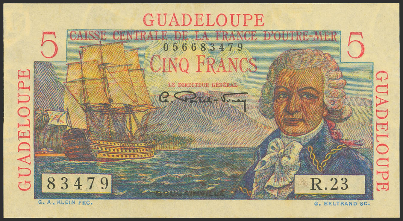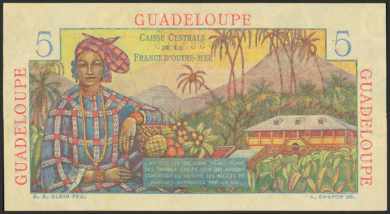 GUADELOUPE. 5 Francs. 1947. (Pick: 31). Unusual, slightly toned. Uncirculated.