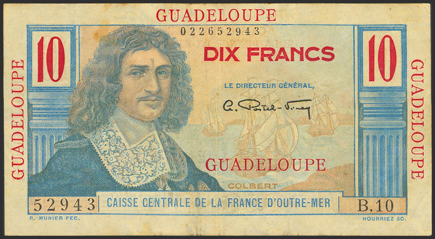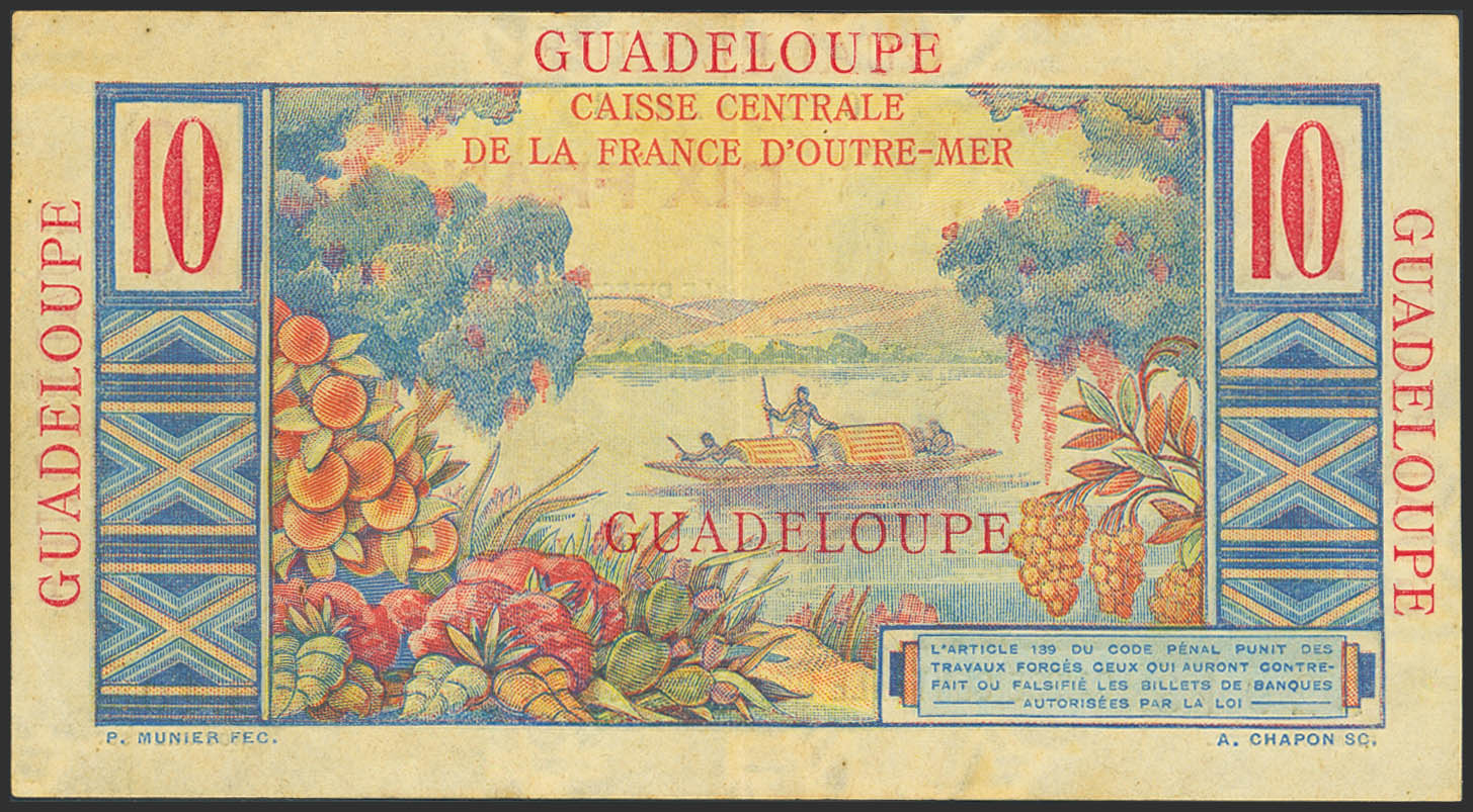 GUADELOUPE. 10 Francs. (1949ca). (Pick: 32). More than Very Fine.