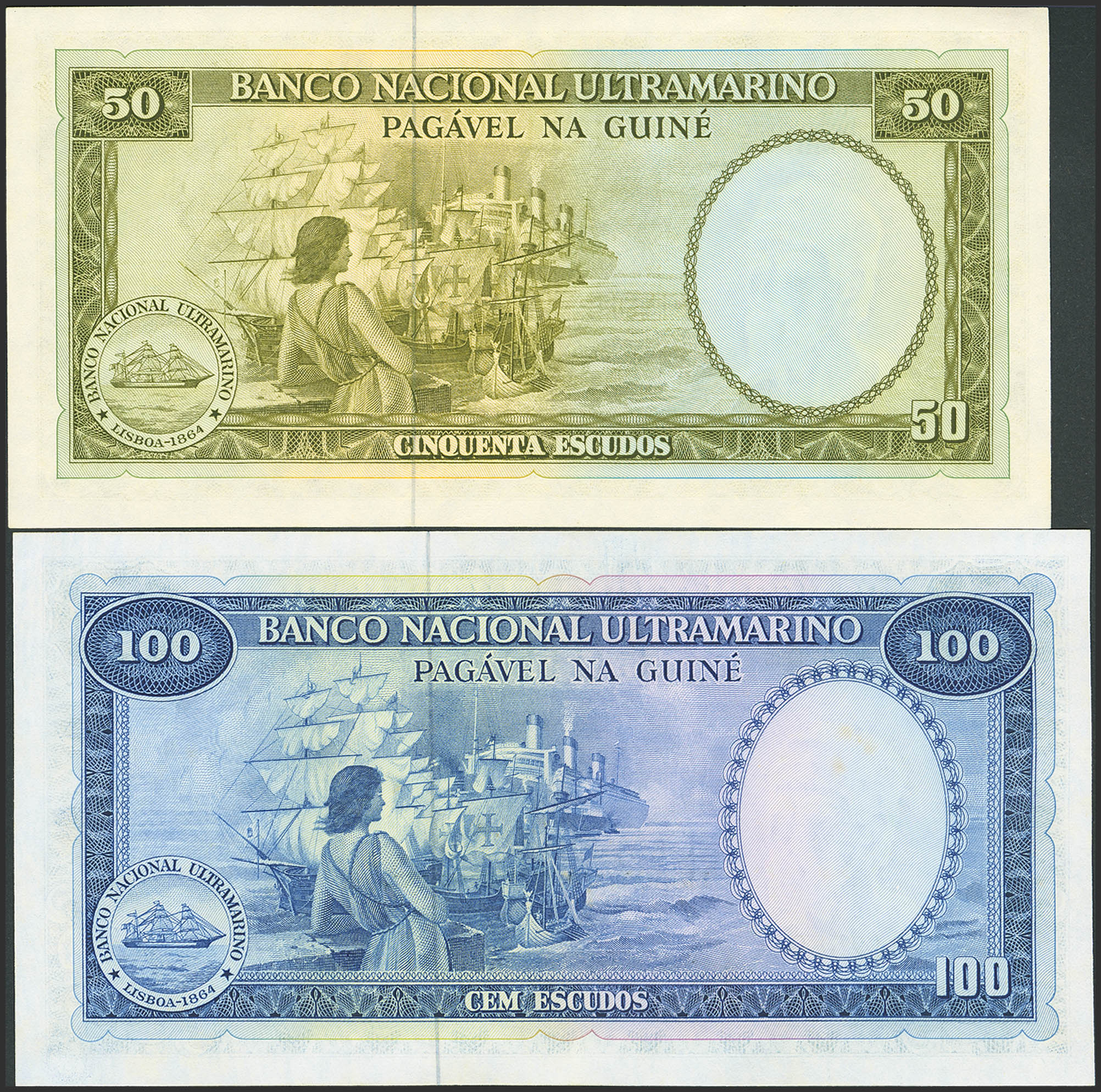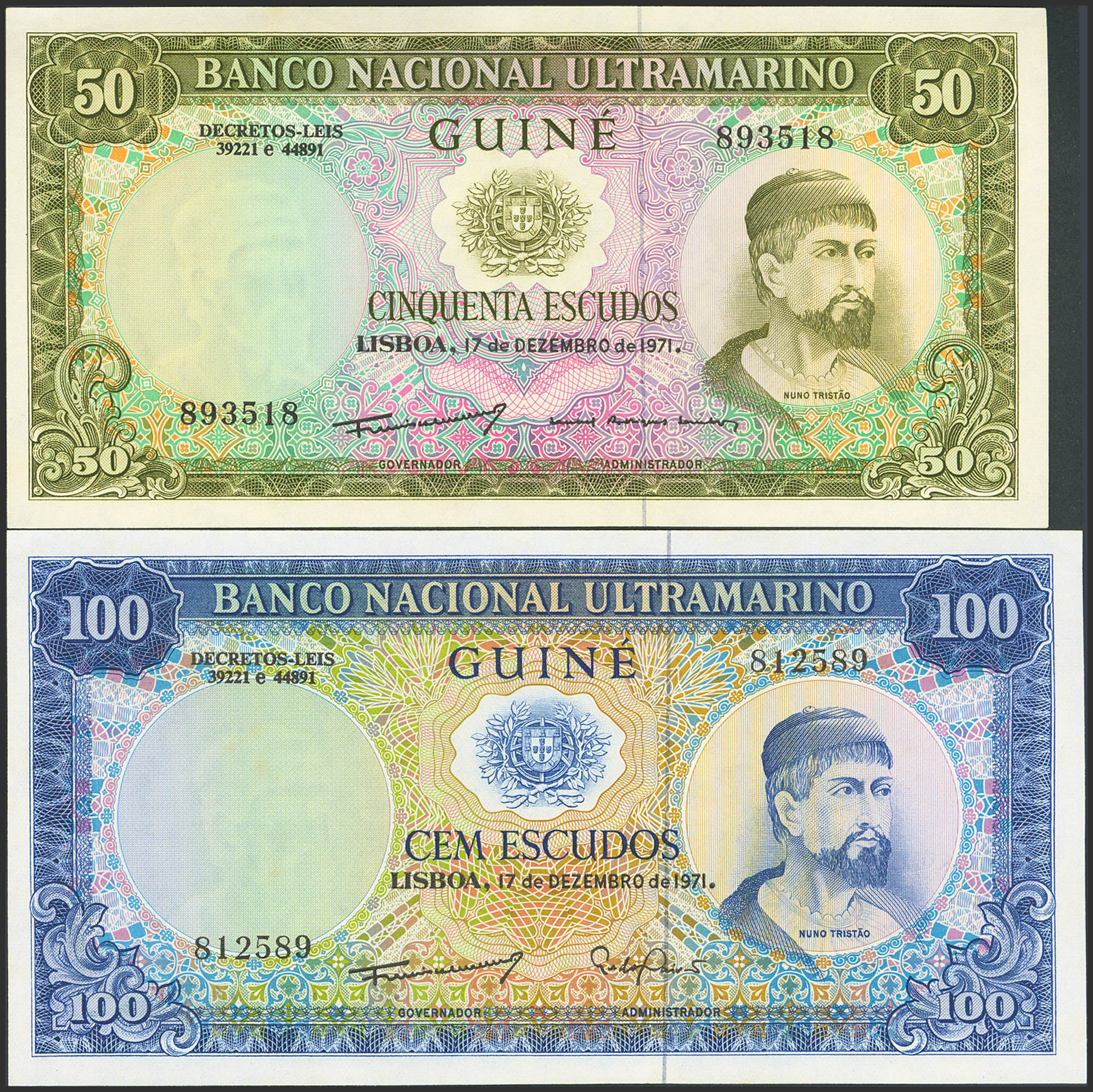 GUINEA. 50 Escudos and 100 Escudos. 17 December 1971. (Pick: 44a, 45a). Uncirculated.
